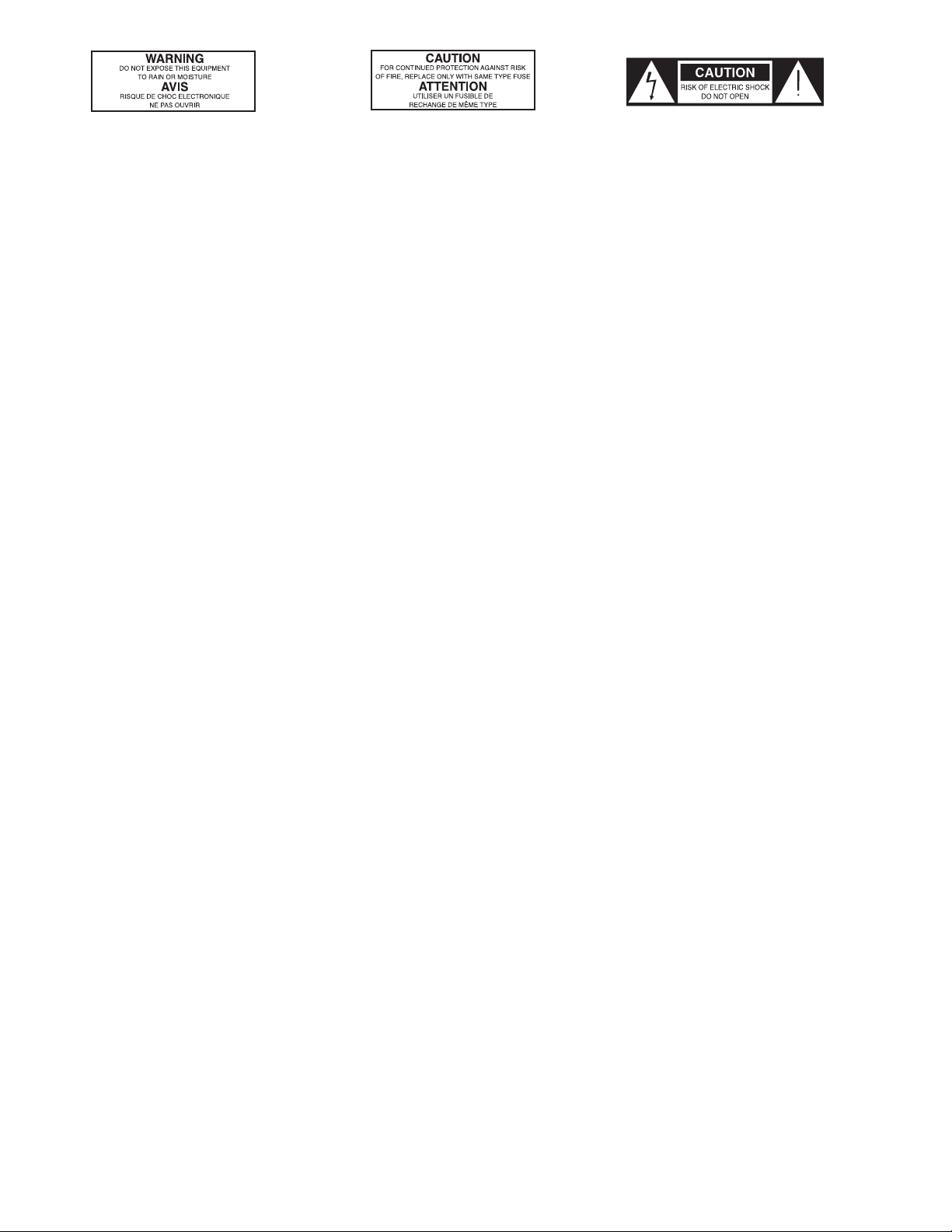 ATTENTION: Pour éviter tout risque d’électrocution ou d’incendie, ne pas exposer