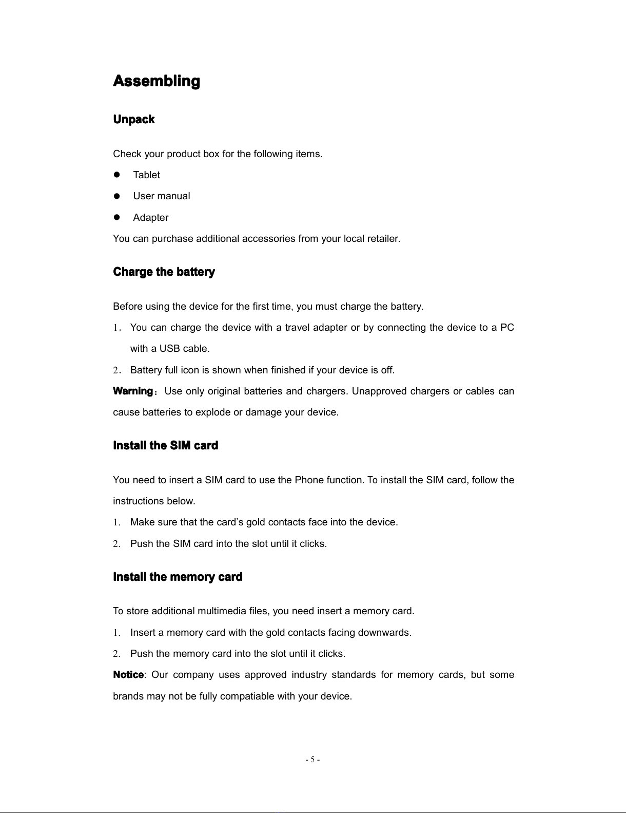 Install the SIM card .............................................................................................................. - 5 -