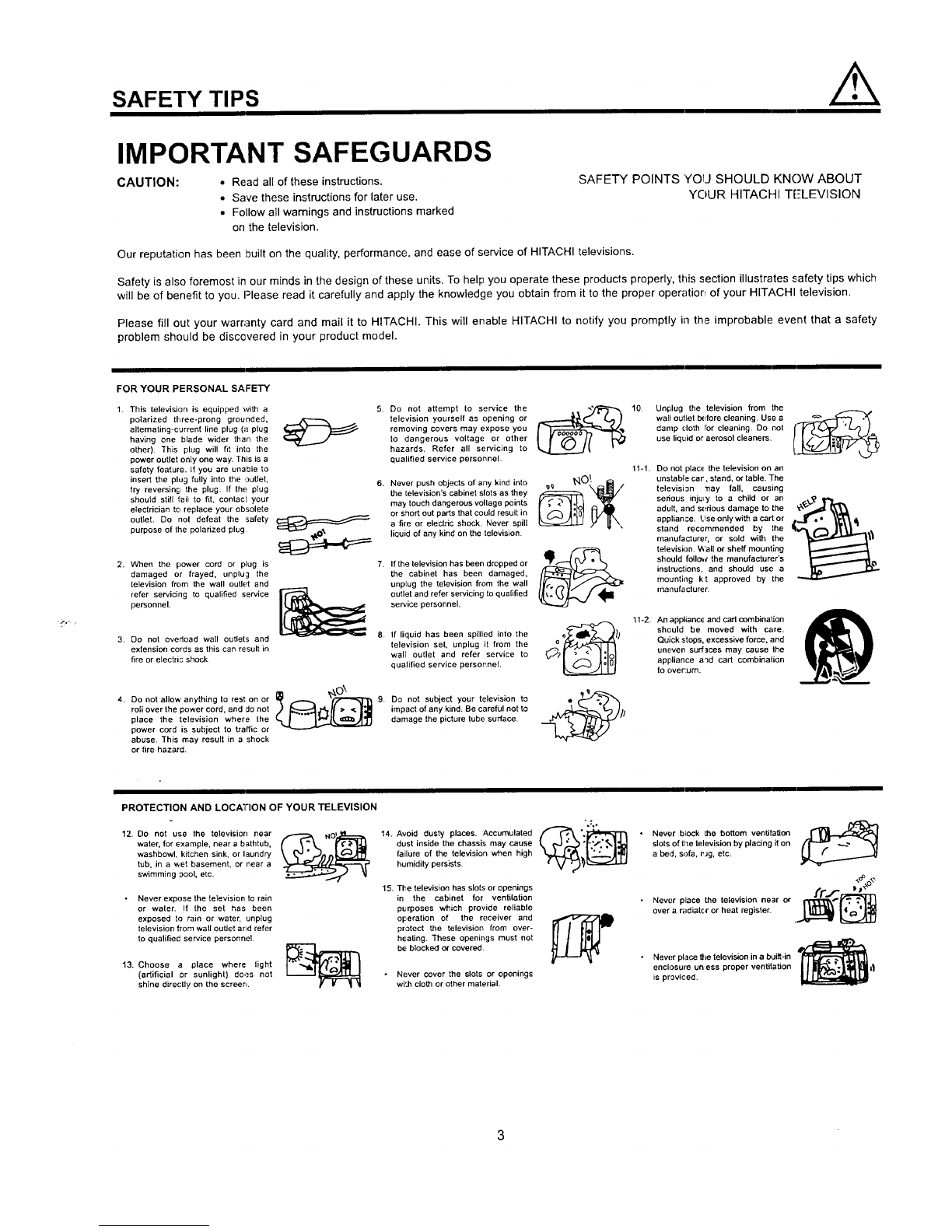 PROTECTION AND LOCATION OF YOUR TELEVISION