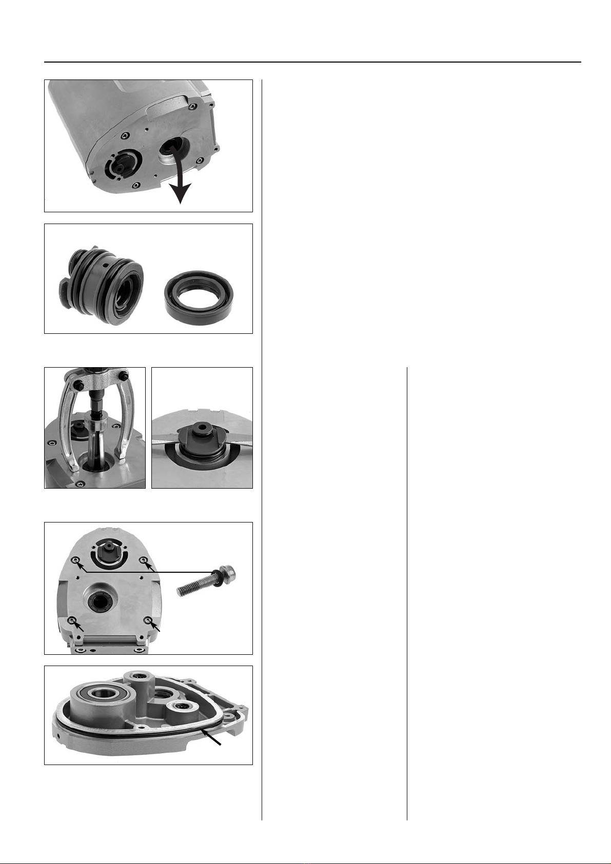When replacing the oil, the seals must be replaced as per the spares set
