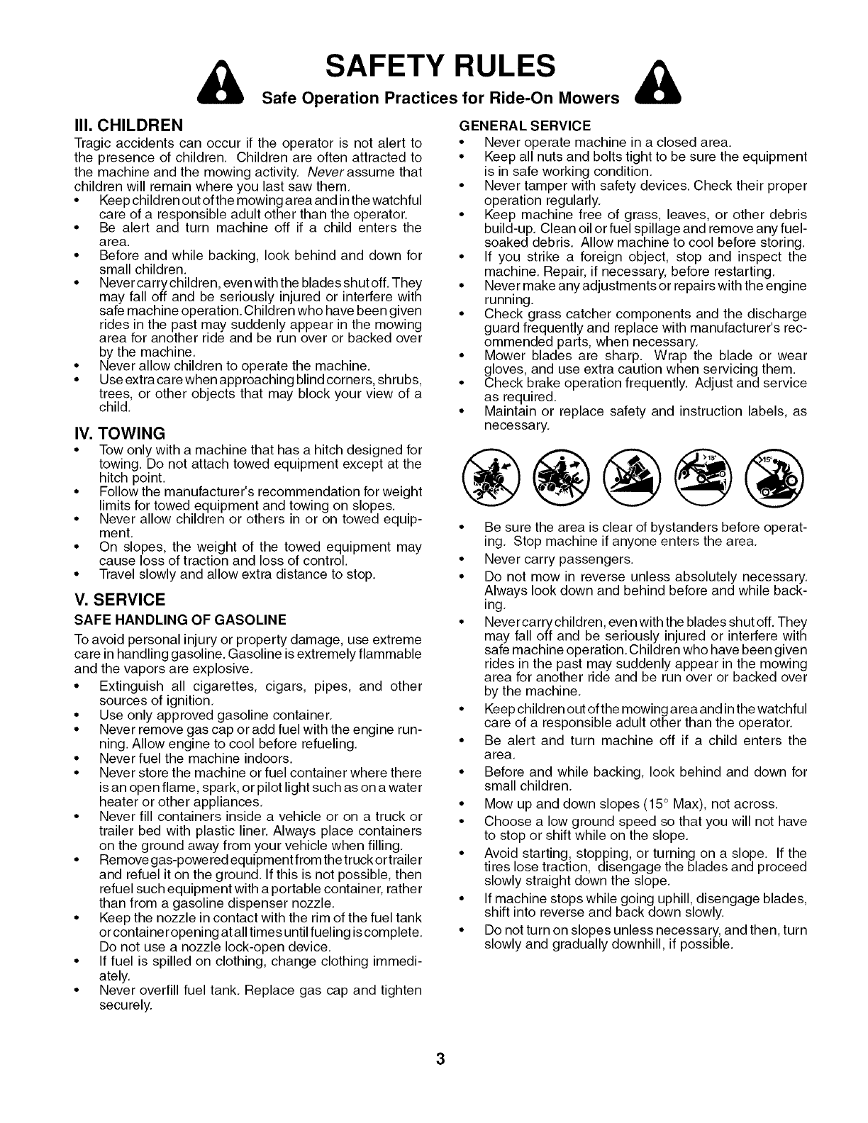 • Do not mow in reverse unless absolutely necessary.