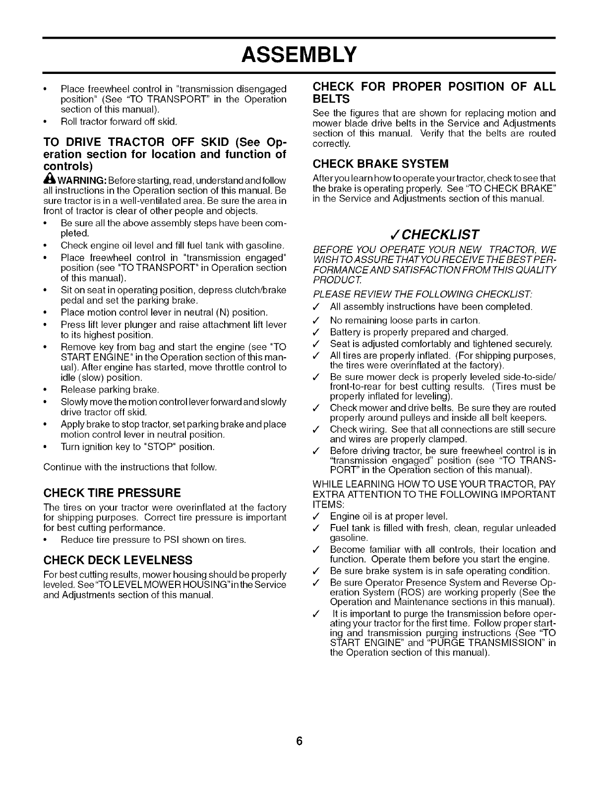 • Operate machine only in daylight or good artificial