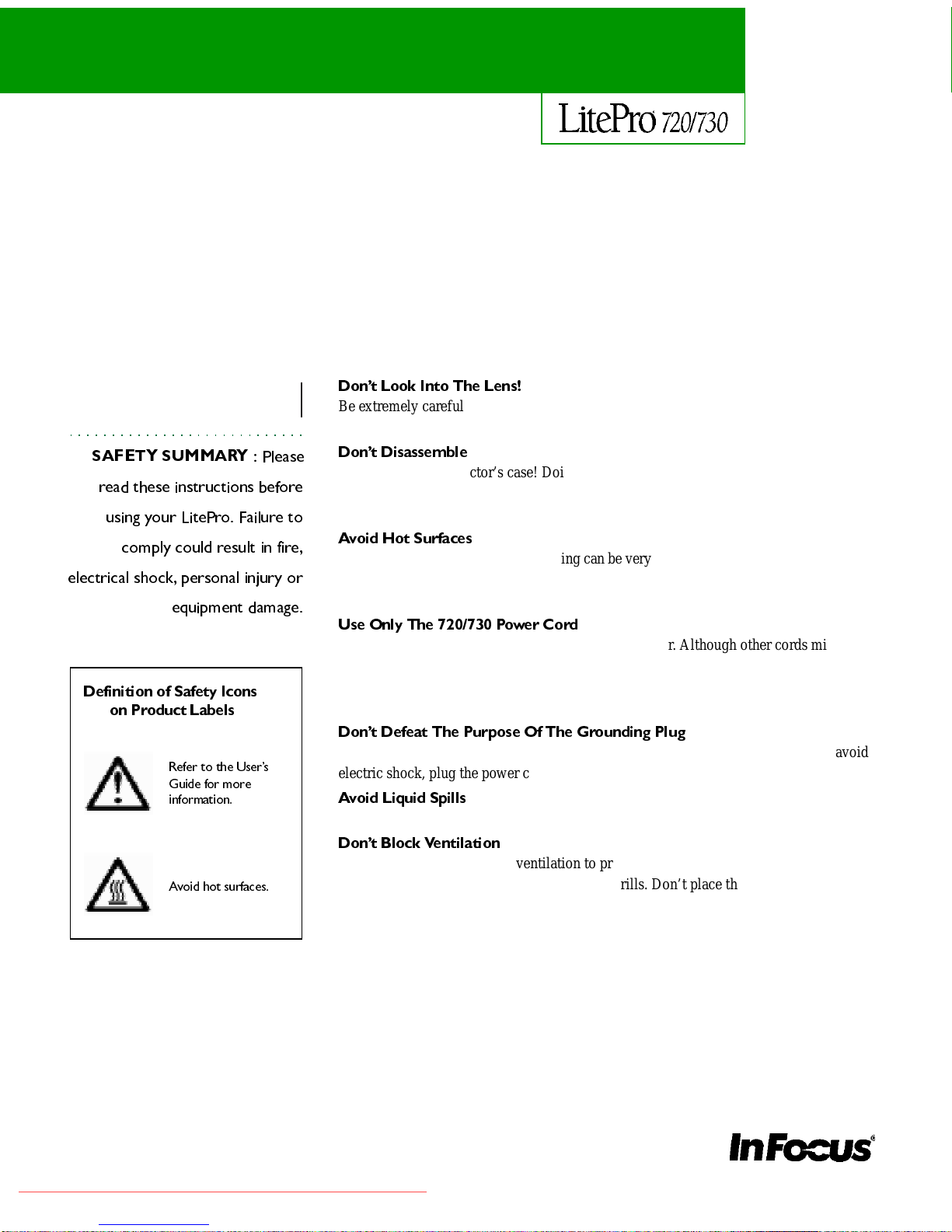 InFocus LitePro 720 Manuale utente
