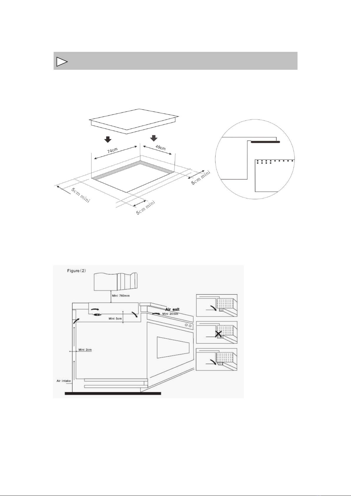 Make sure the cooktop is correctly installed as shown in Figure 2.