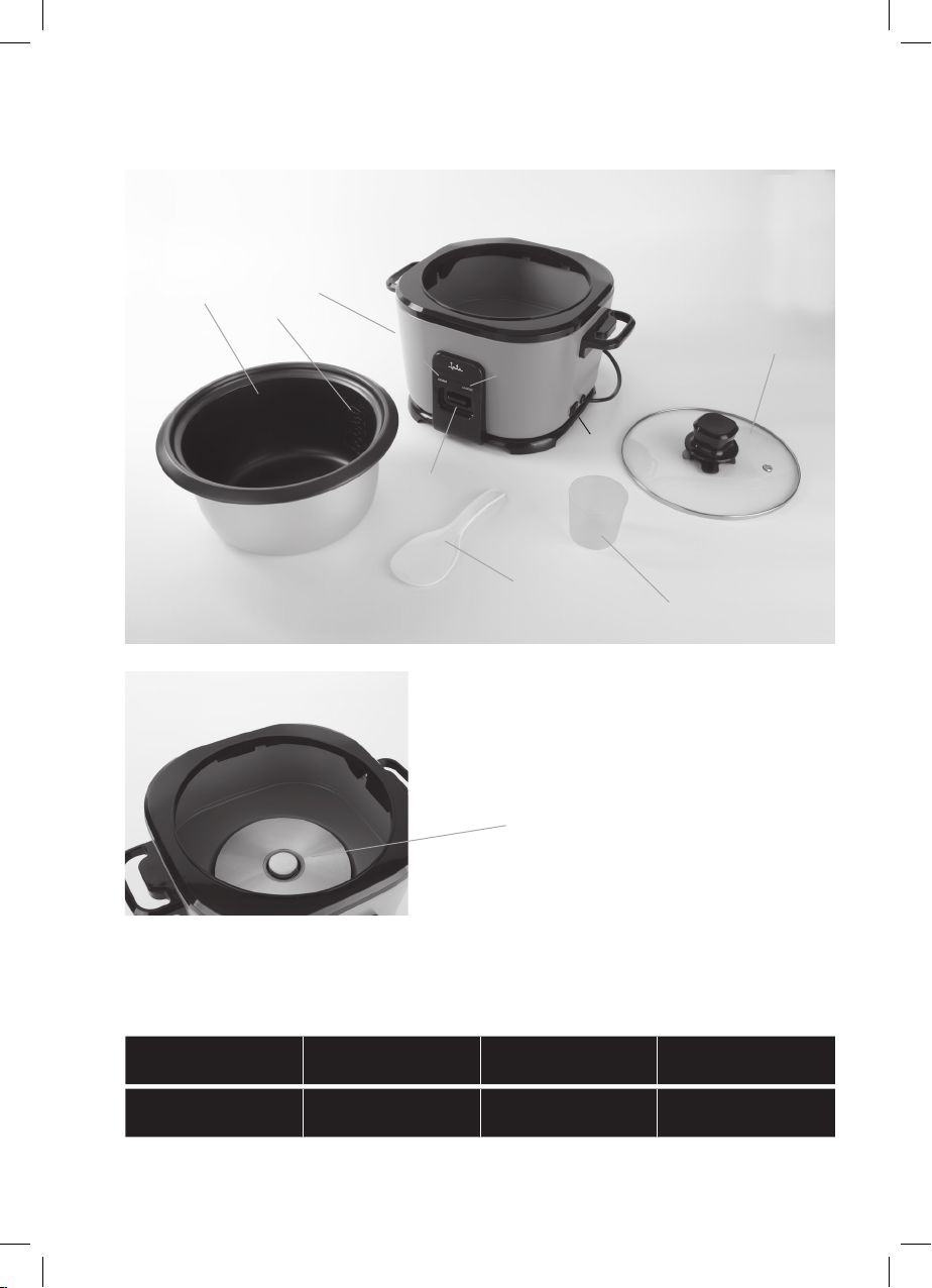 • Meça a quantidade desejada de arroz com o copo medidor (4). Lave-a com água. Não use o recipiente para