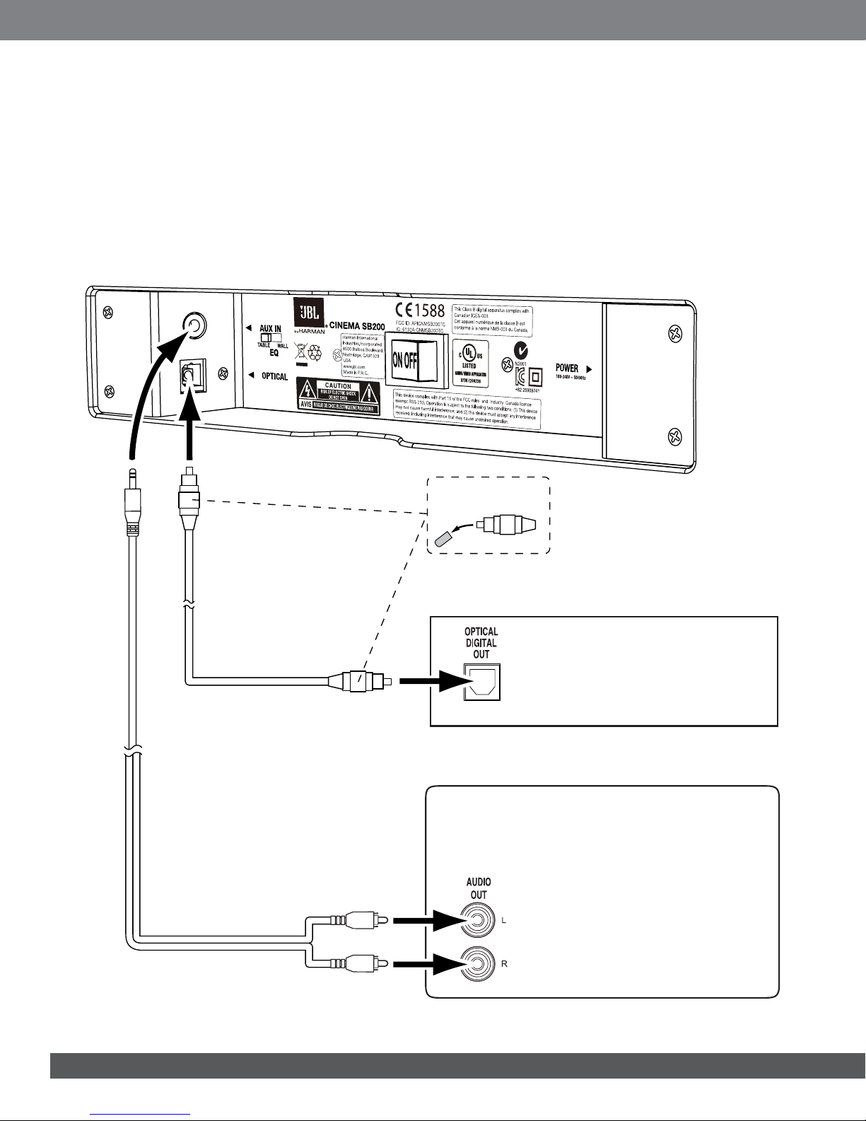 TV, disc player or cable/satellite tuner here.