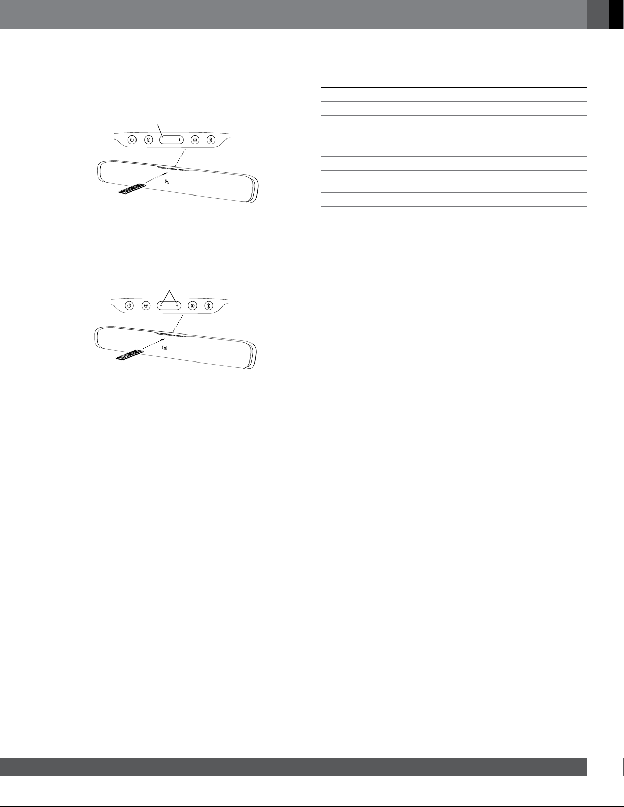 the soundbar. (The Volume +/– indicators both illuminate white.) While