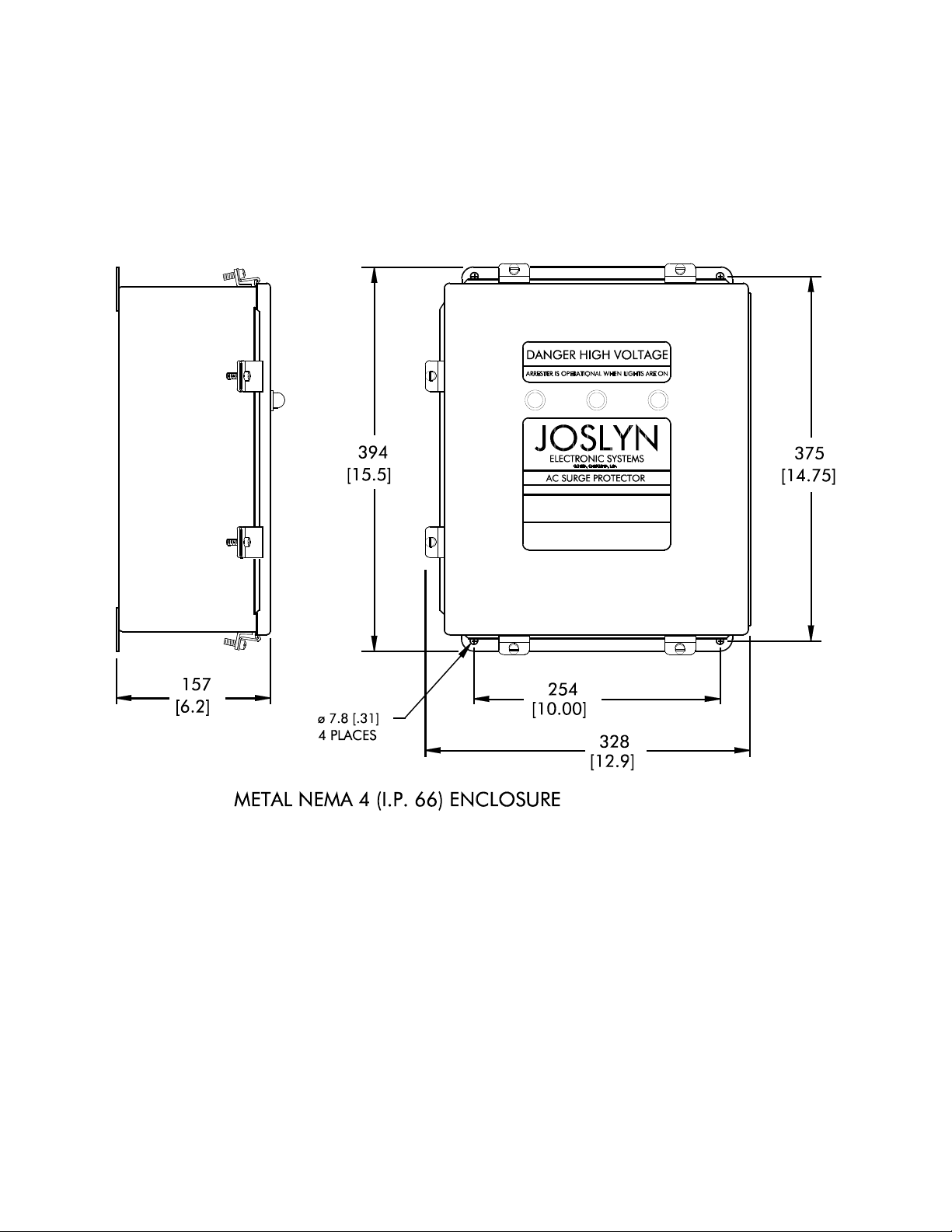 Mounting: The protector may be mounted in any position using the four φ7.8 mounting holes.