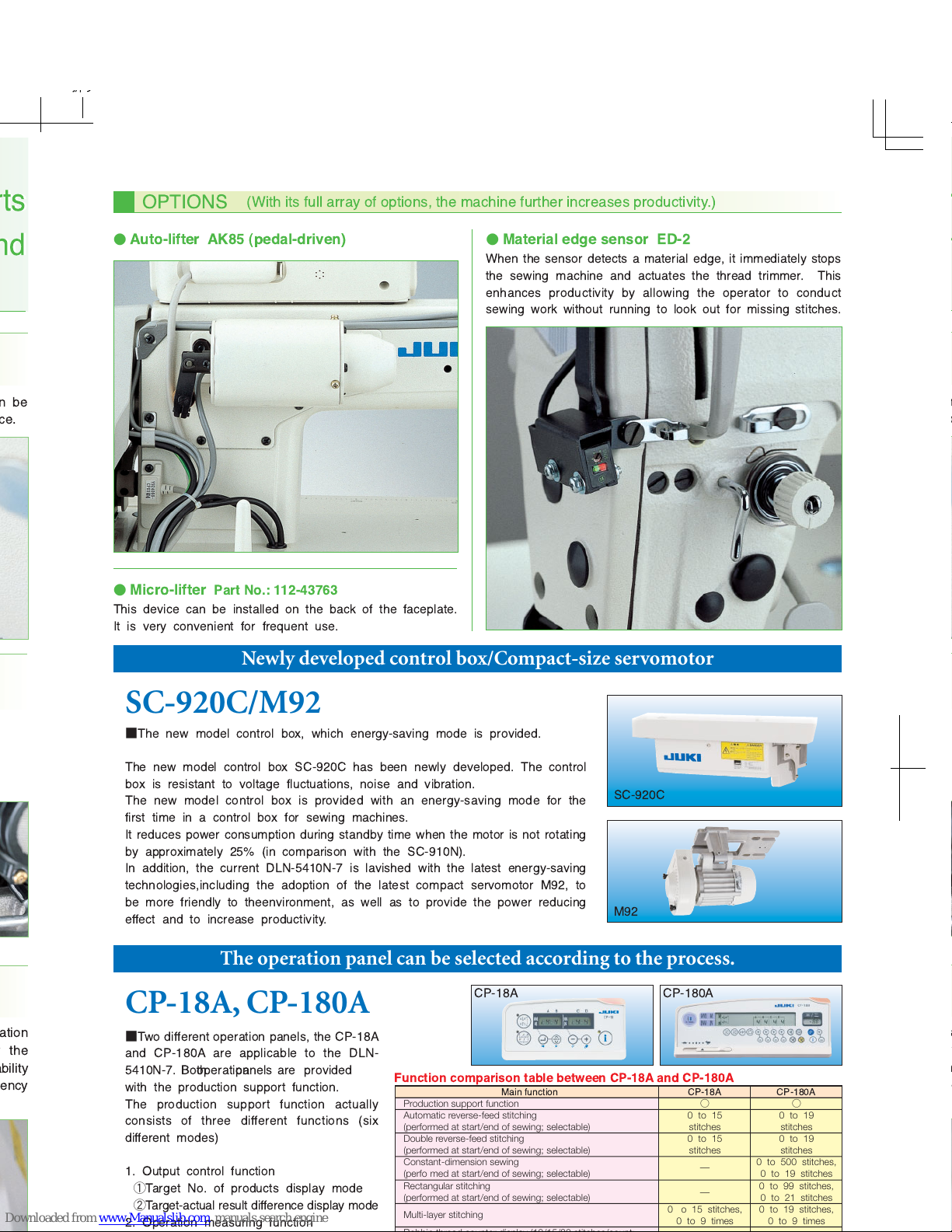 Function comparison table between CP-18A and CP-180A