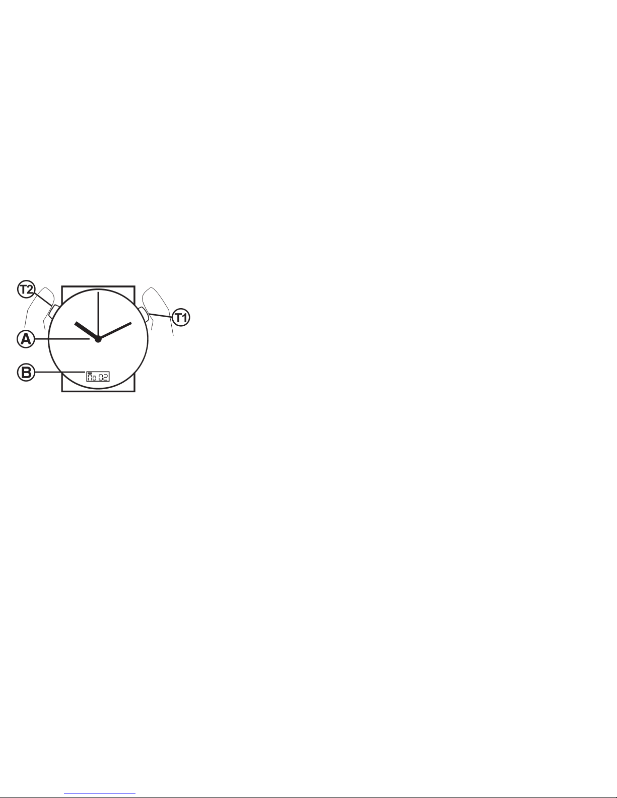 Repeatedly pressing the T2 button enables you to set the hour in