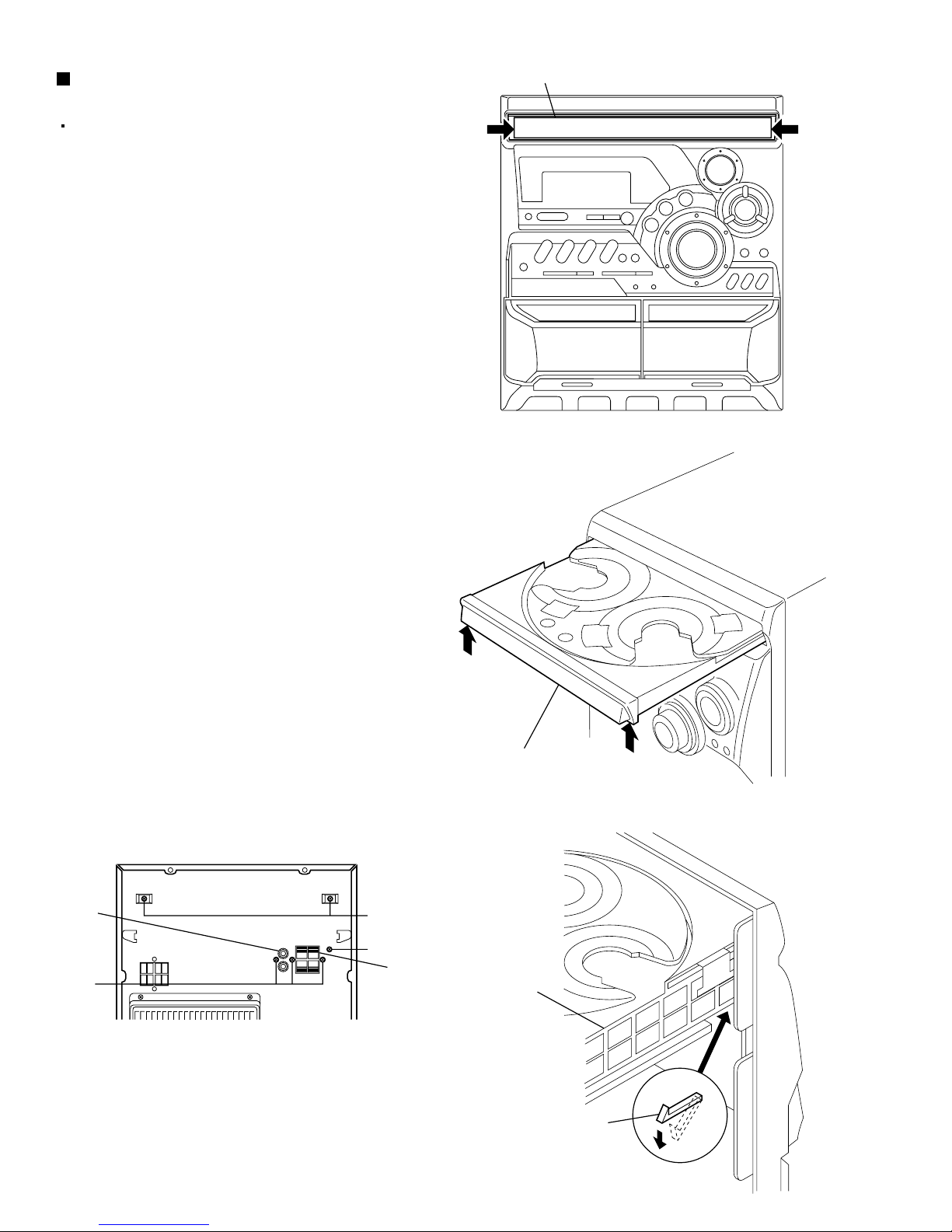 (antenna terminals, knobs, metal cabinet, screw heads, headphone jack, control shafts, etc.) to be sure the