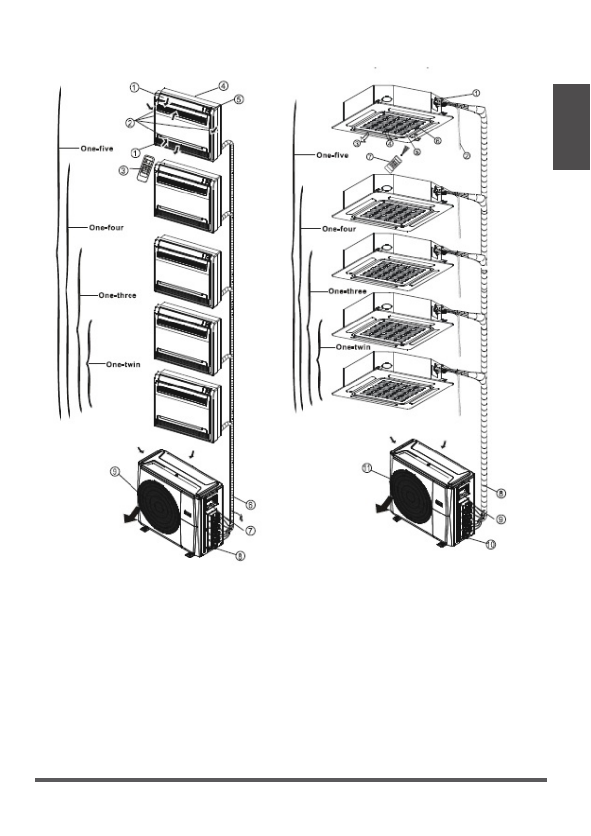 the indoor unit and air filter.