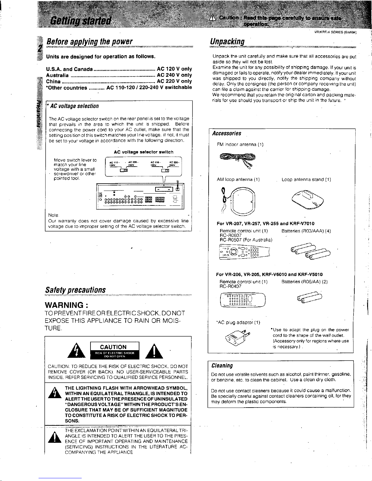 Kenwood VR-207 Manuale utente