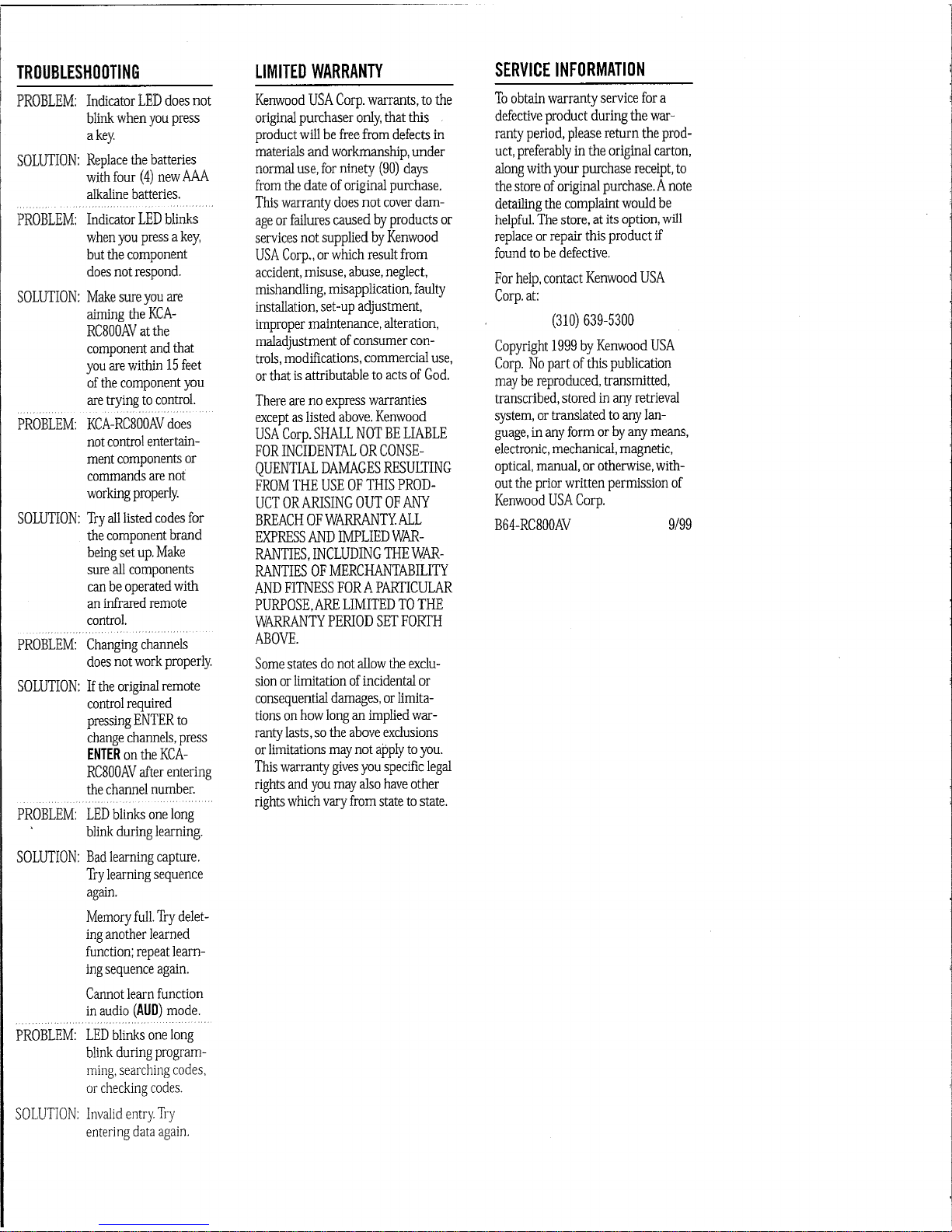 Altri manuali Kenwood Telecomando