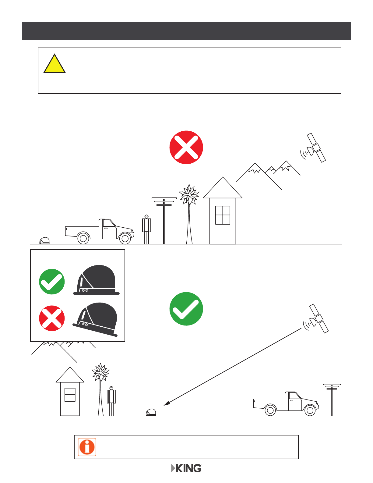 build-up or block the satellite signal from reaching the KING Quest.