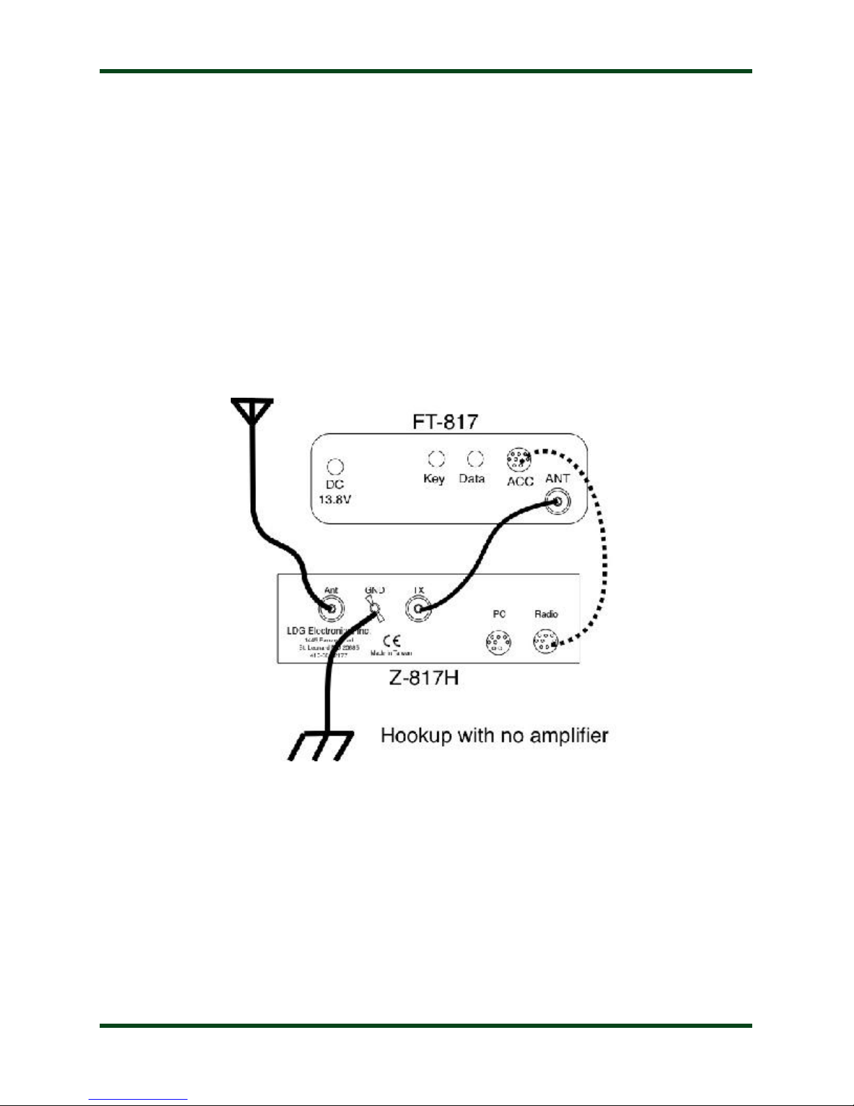 your Yaesu FT-817 HF radio and external amplifier. The Z-817H connects to the ACC port or
