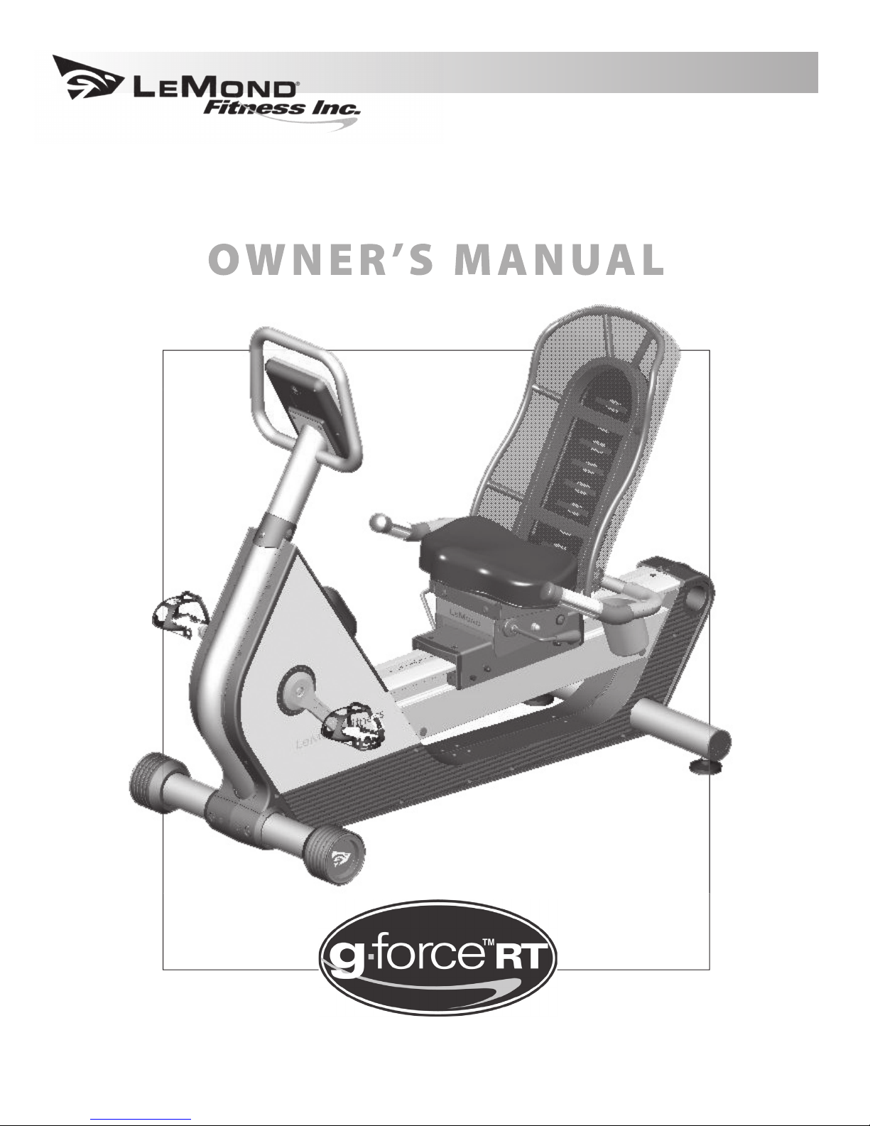 This g•force RT Owner’s Manual will help you get the most enjoyment from your new recumbent bike.