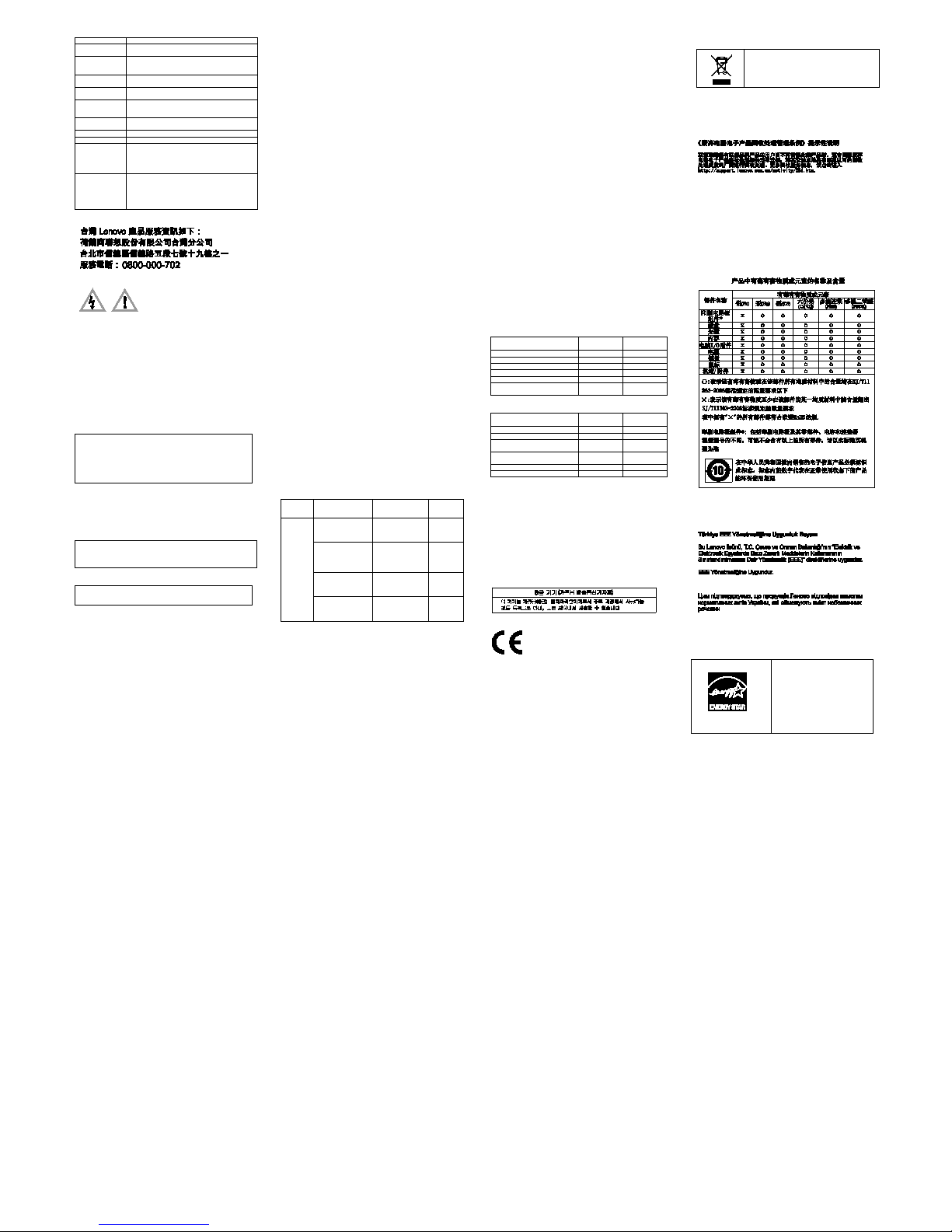Lenovo product service information for Taiwan