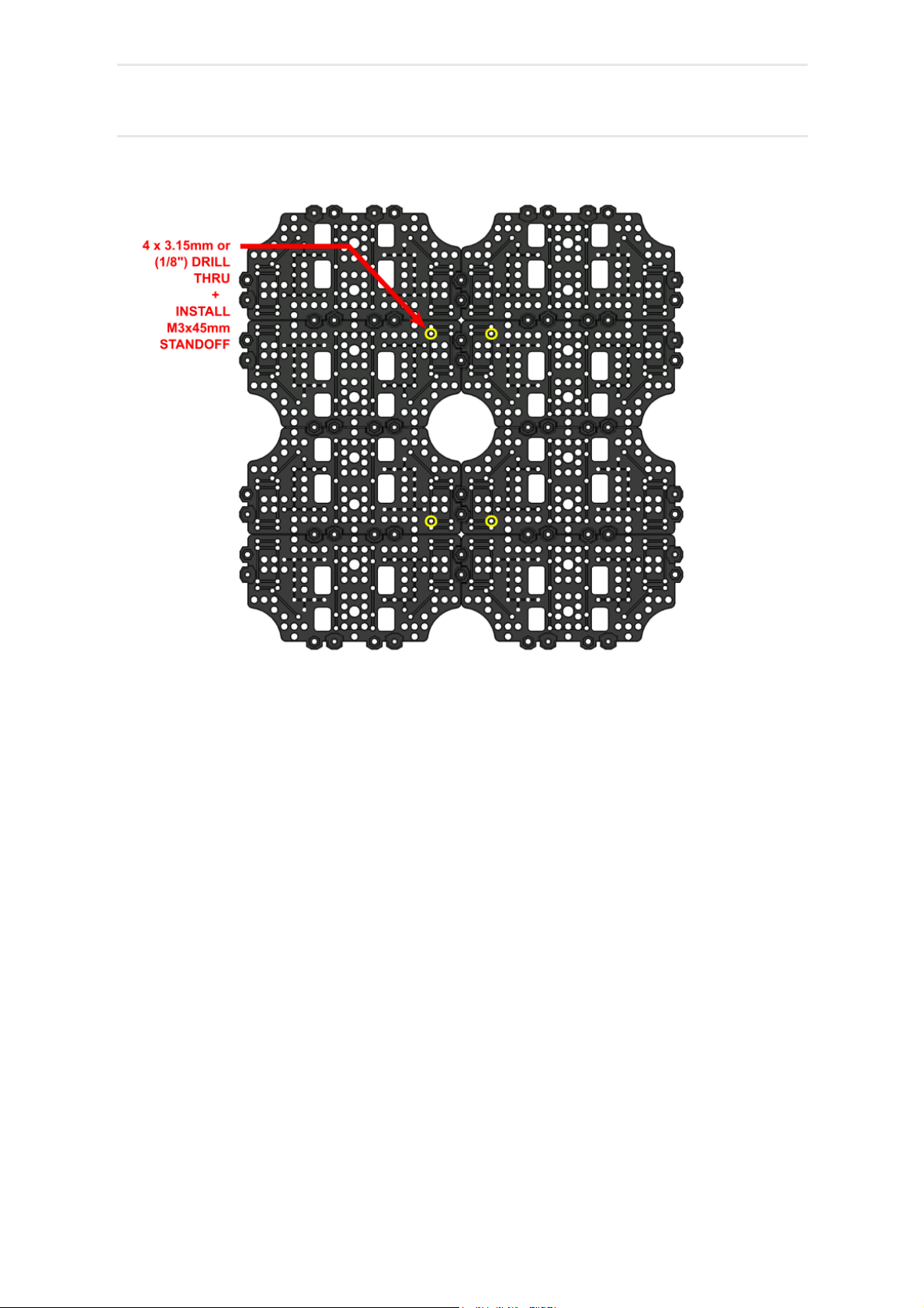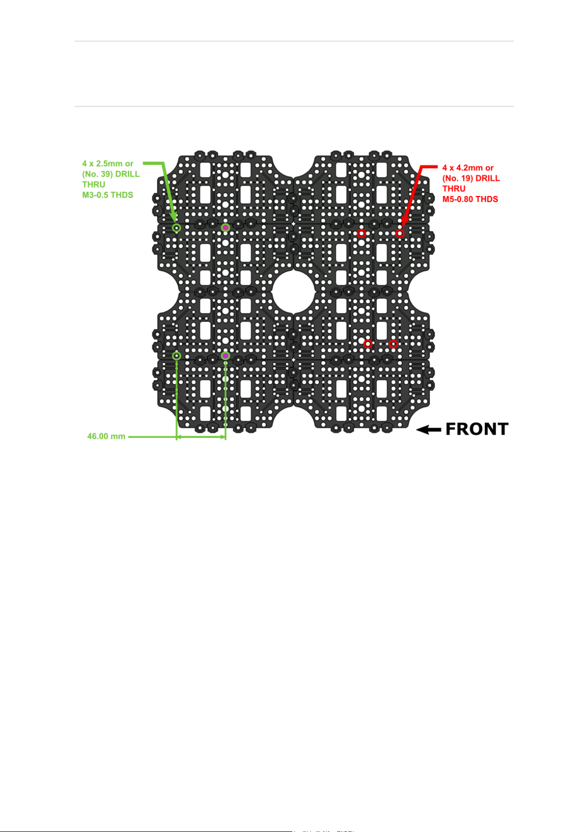 installation the indicated holes must be drilled out for an M3 free fit (3.15mm or 1/8" Drill).