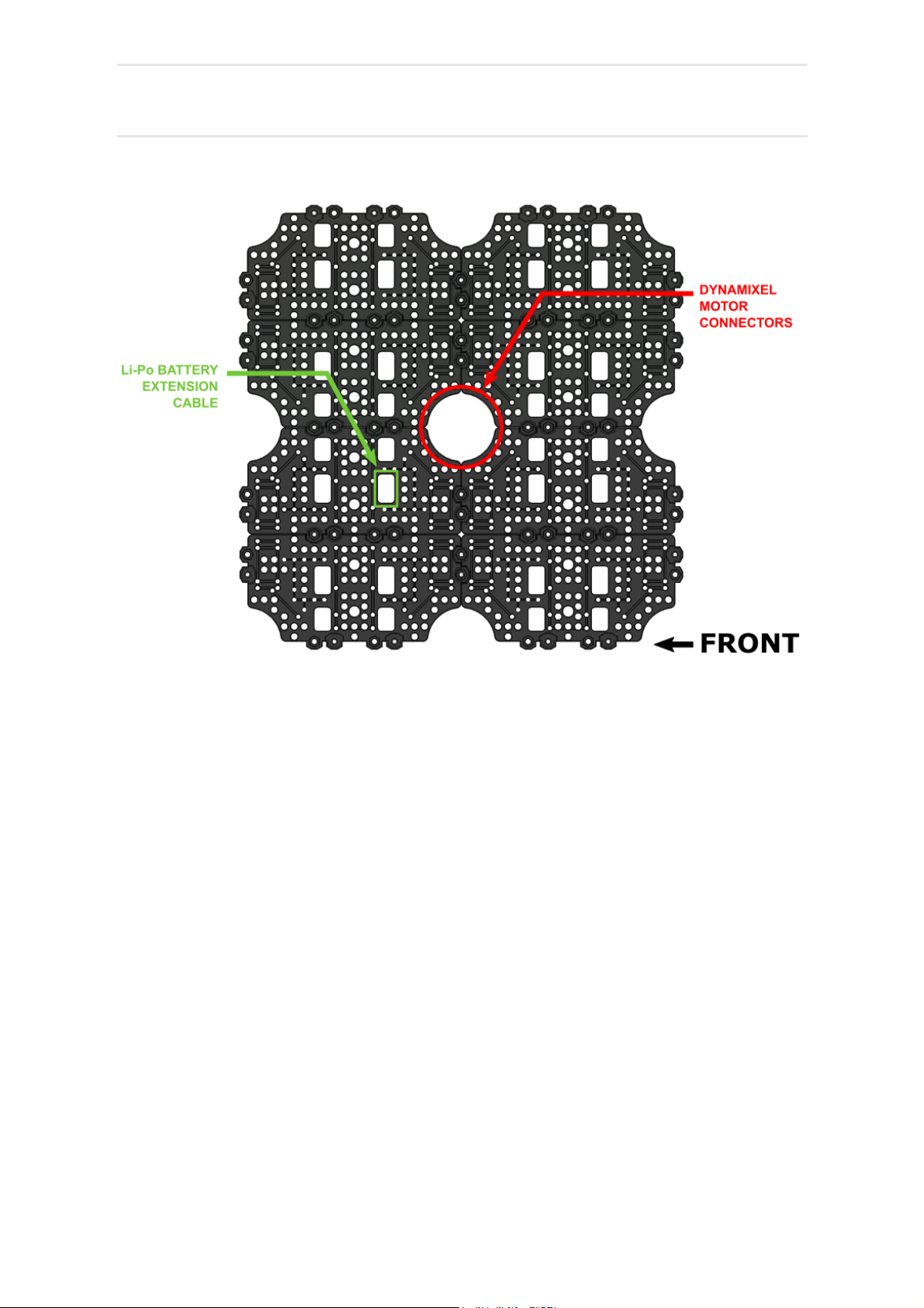 Li-Po Battery Extension Cable from the first layer must be correctly routed through the bottom