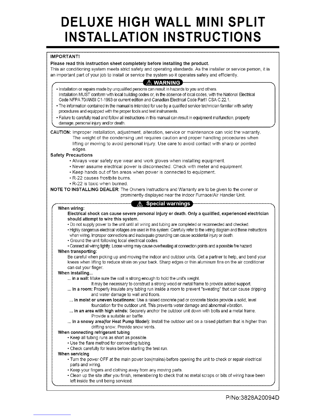 This air conditioning system meets strict safety and operating standards. As the installer or service person, it is