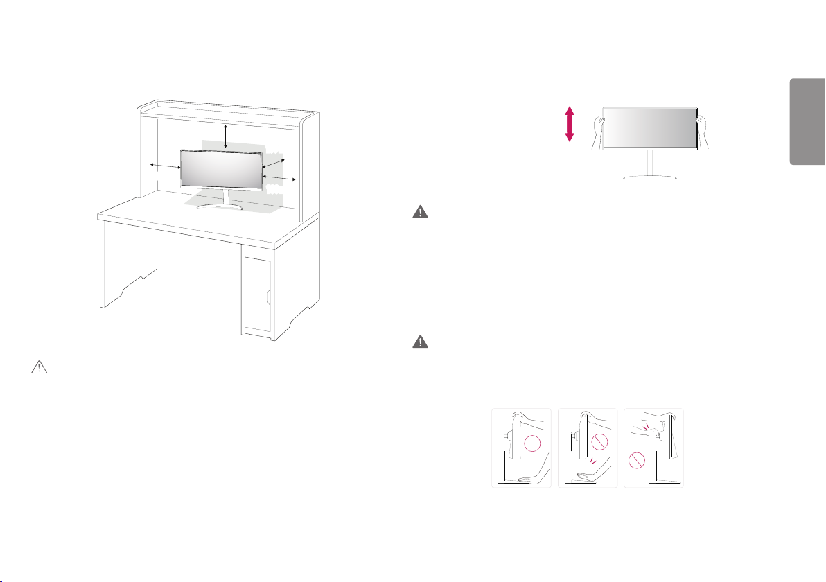 •When lifting or moving the monitor, do not touch the monitor screen. The force applied to the monitor screen