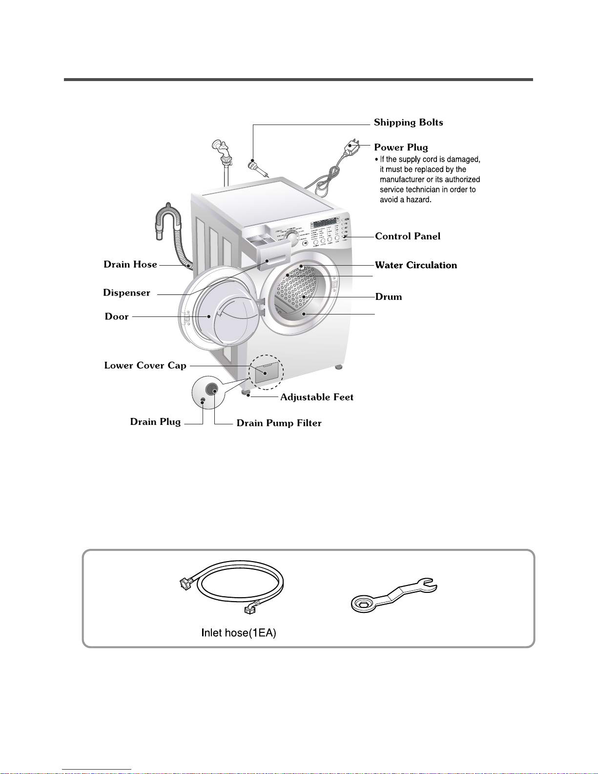 ●The Drum Light comes on when the Power button is pressed. It goes off when the door is closed and the