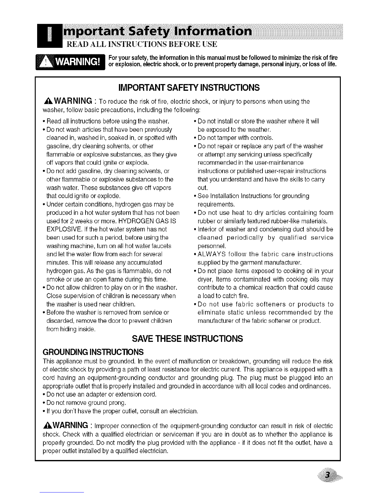 • Read all instructions before using the washer.