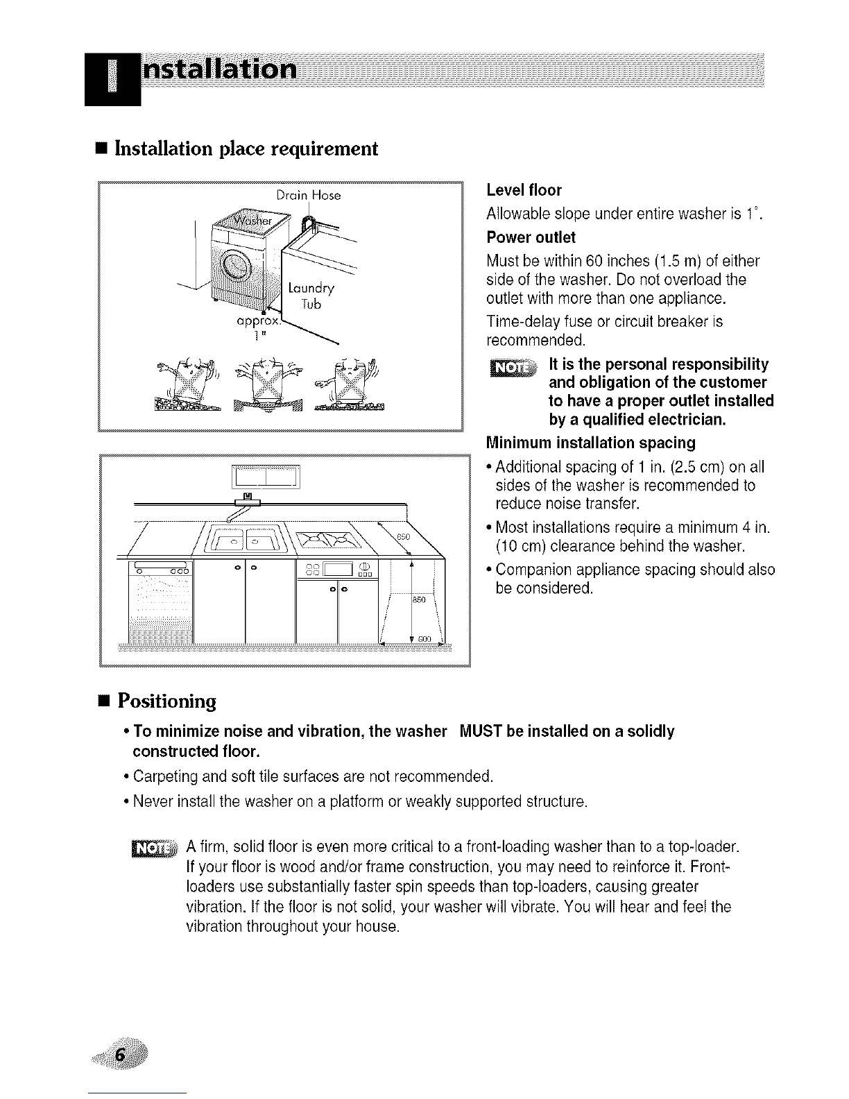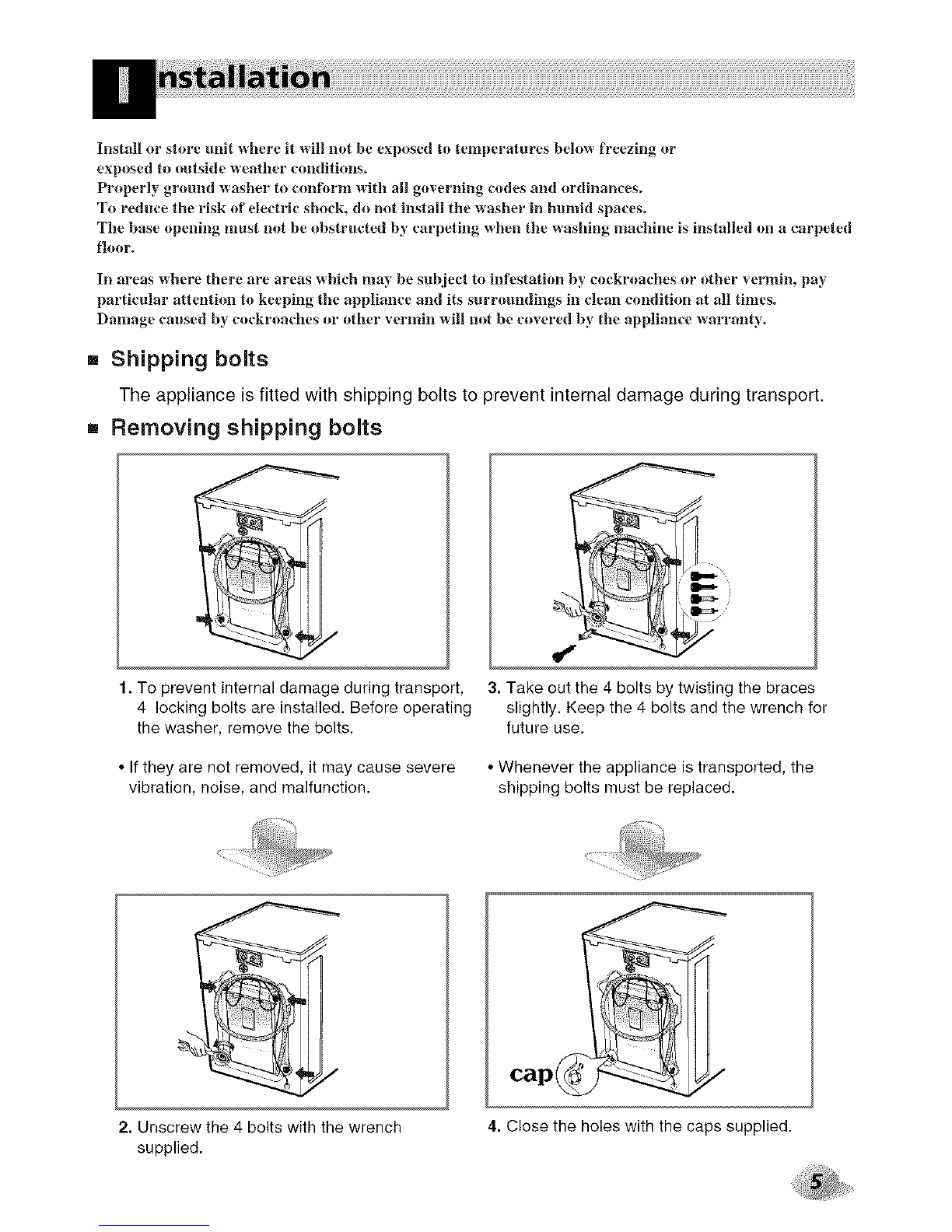 • Do not install or store the washer where it will