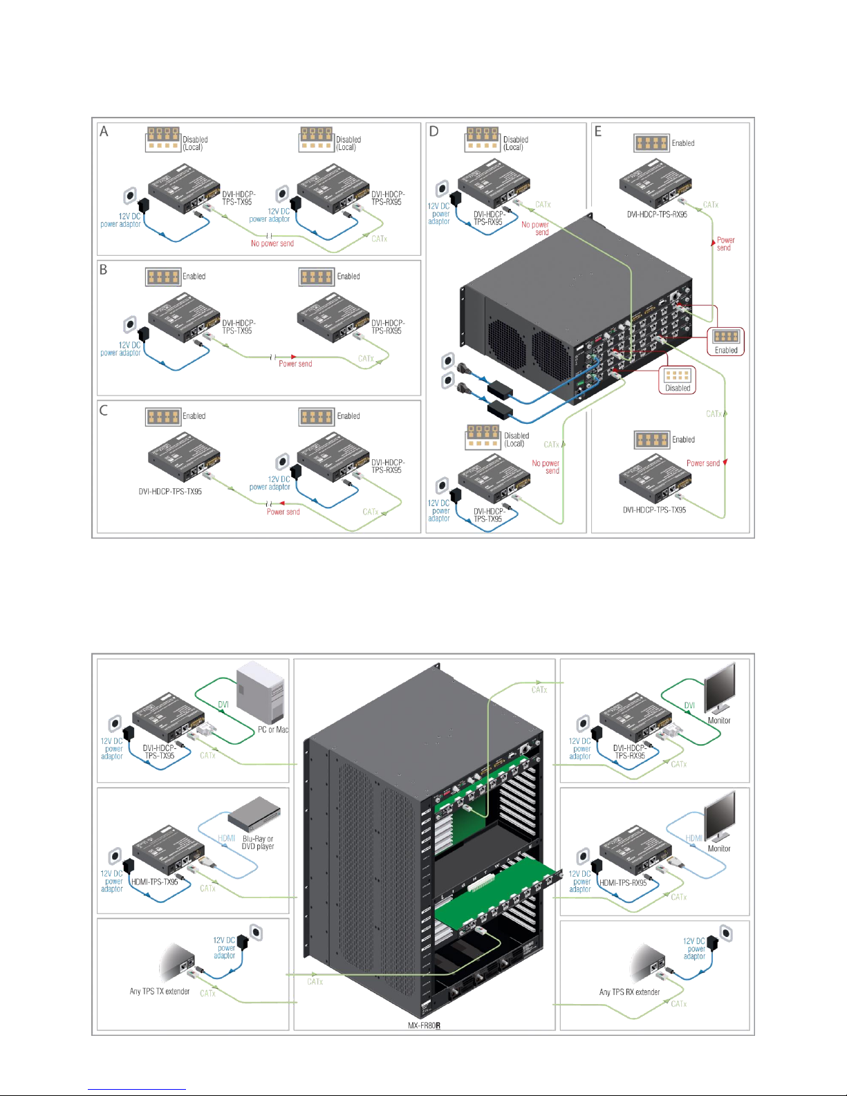 10.Supply the extenders with 12V 2A DC. If the remote power is disabled on the connected