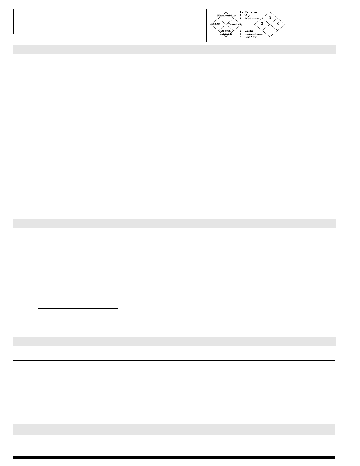 Section VI - Health Hazard Data and Toxicological Properties