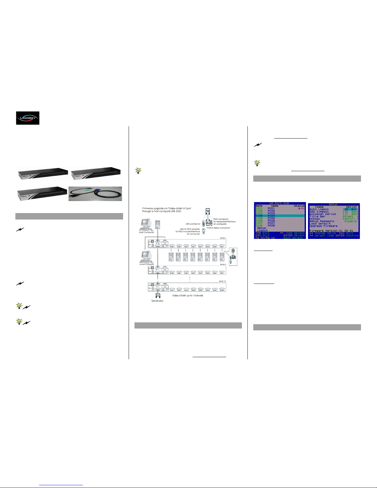 to 16 units of KVM switches. Plug a terminator onto