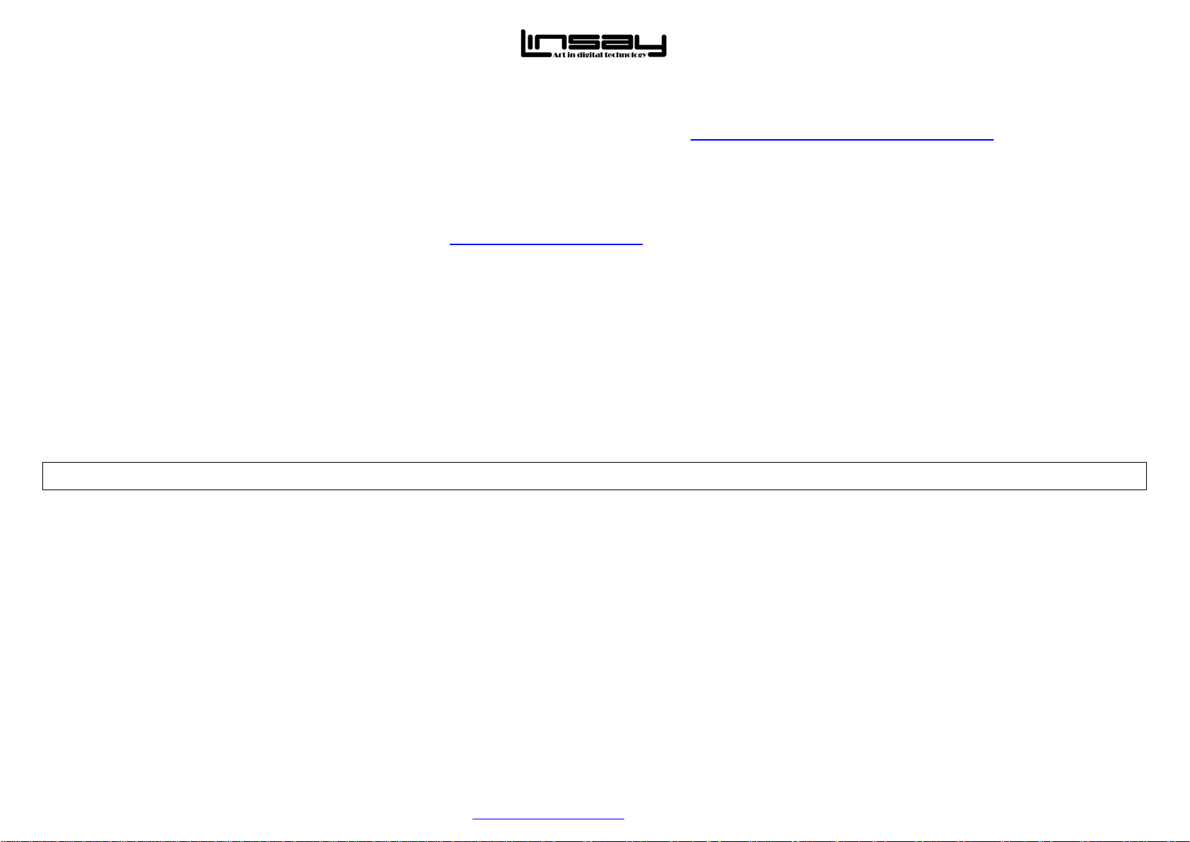 may vary. For up to date information, please visit www.LINSAYdigital.com .