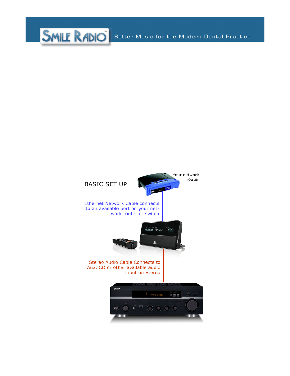 Using the remote, check the volume on your stereo receiver and the Smile Radio player to
