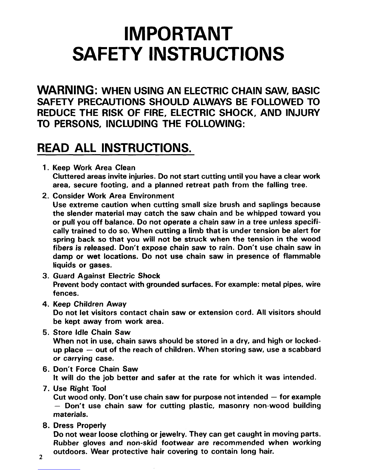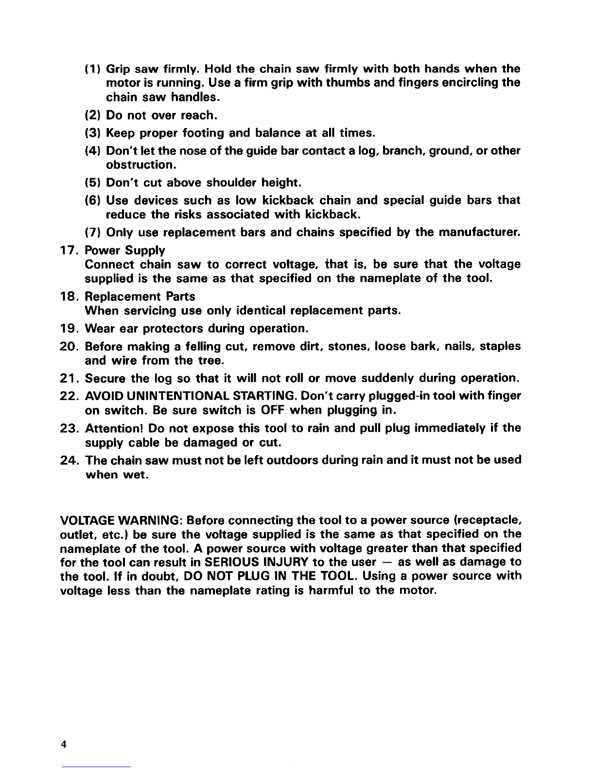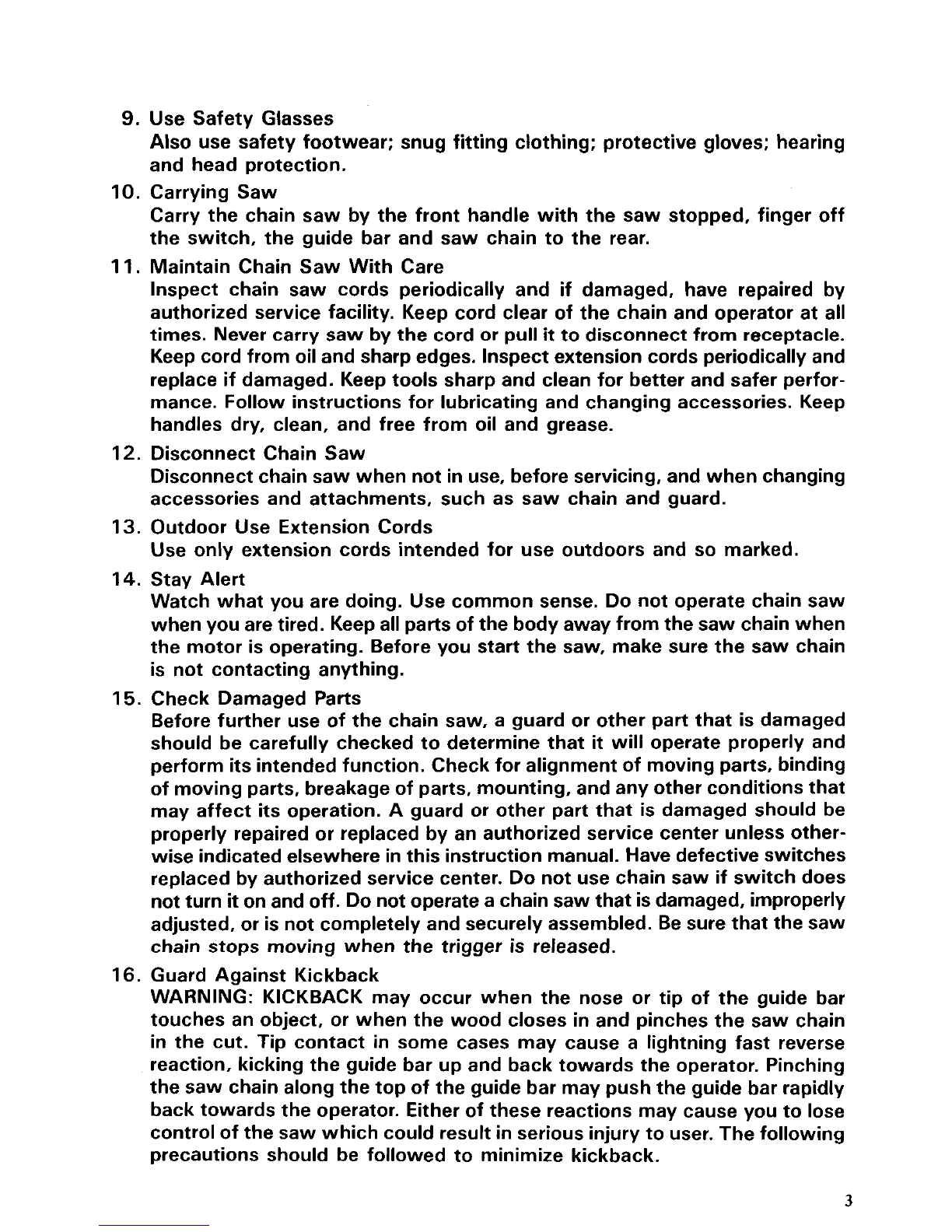 times. Never carry saw bythe cord or pull