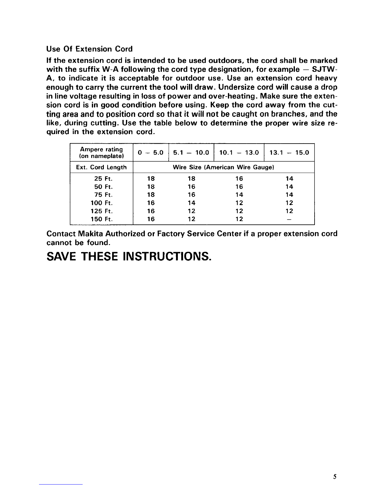 Use only extension cords intended for use outdoors and