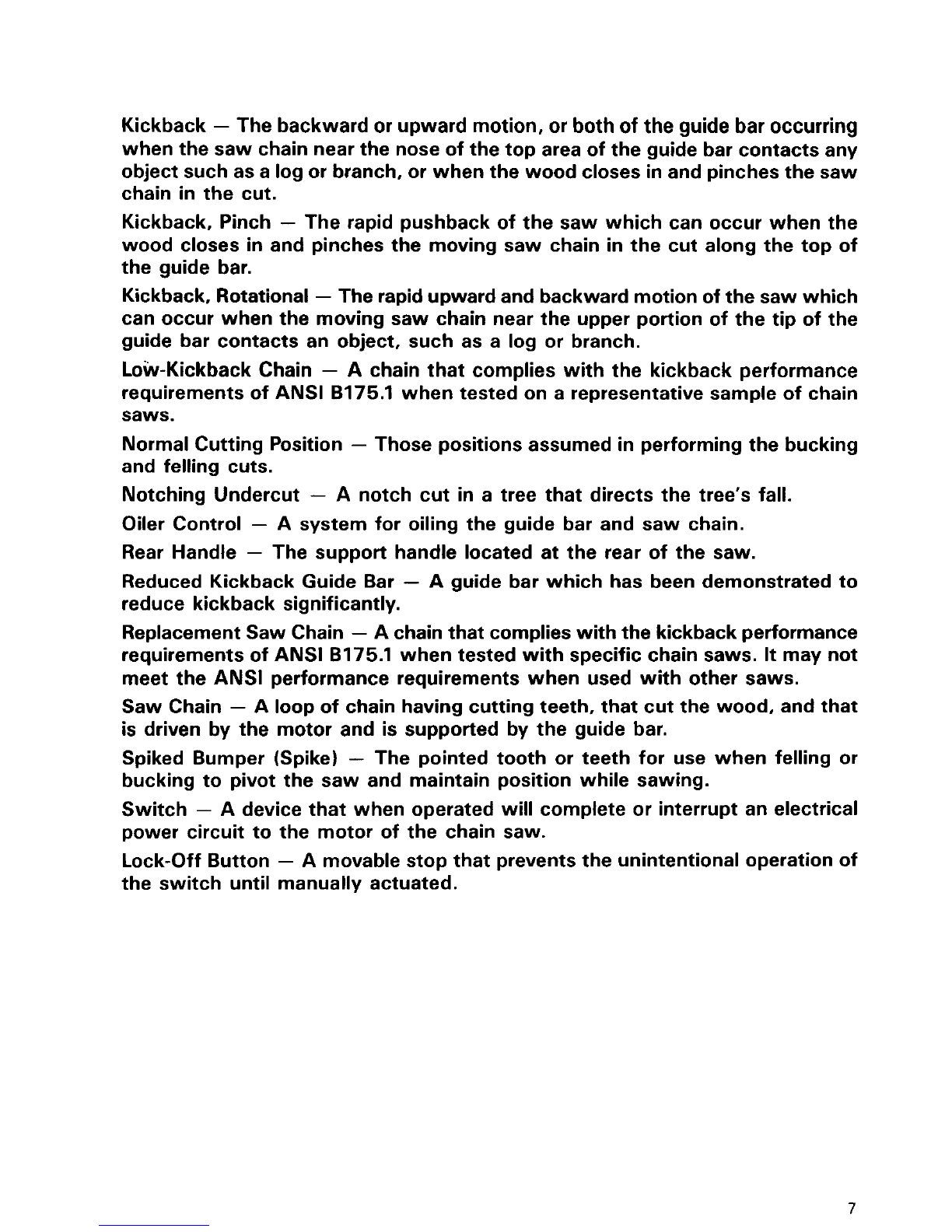 reaction, kickingthe guide bar up and back towards the operator. Pinching