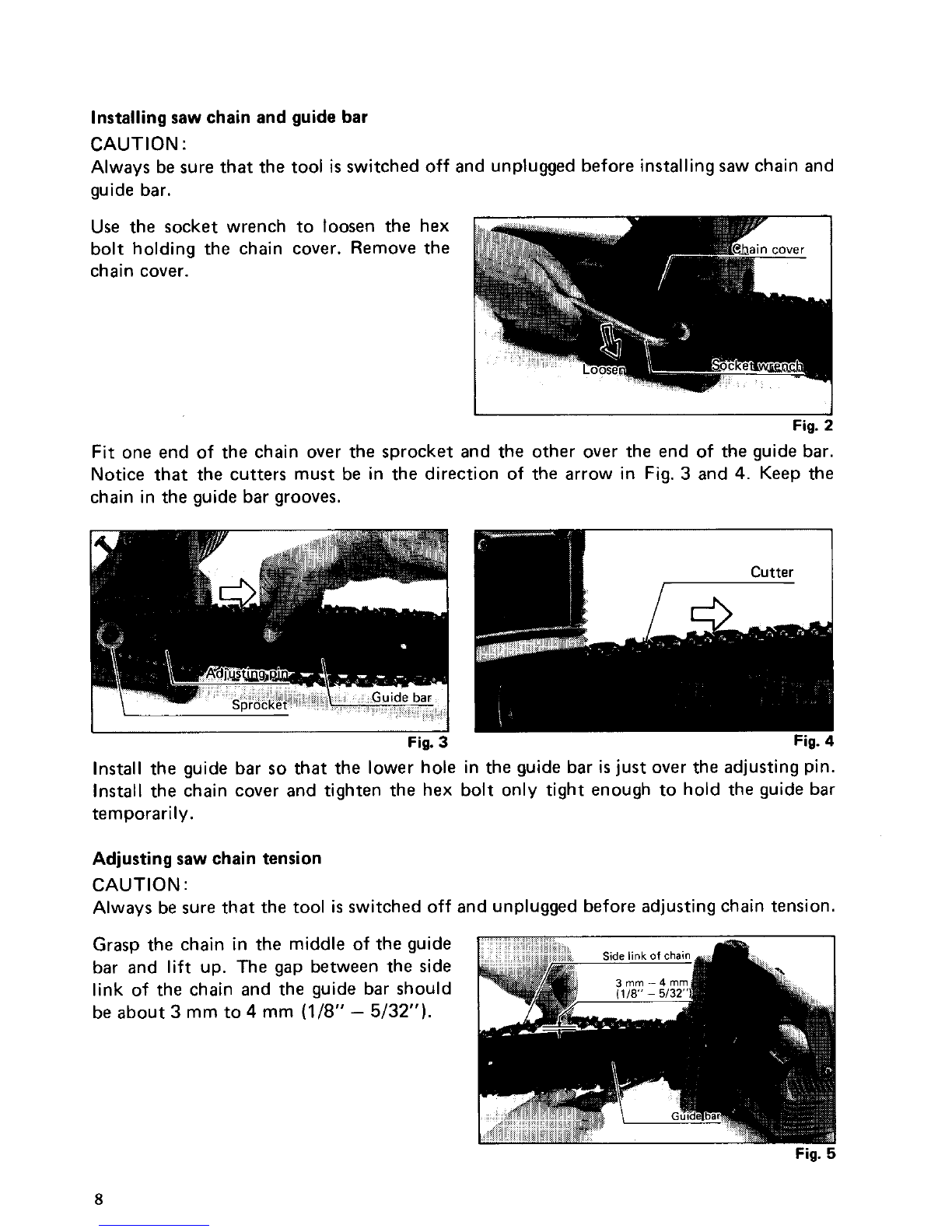 whenyouaretired. Keepall partsof the bodyaway fromthe saw chain when