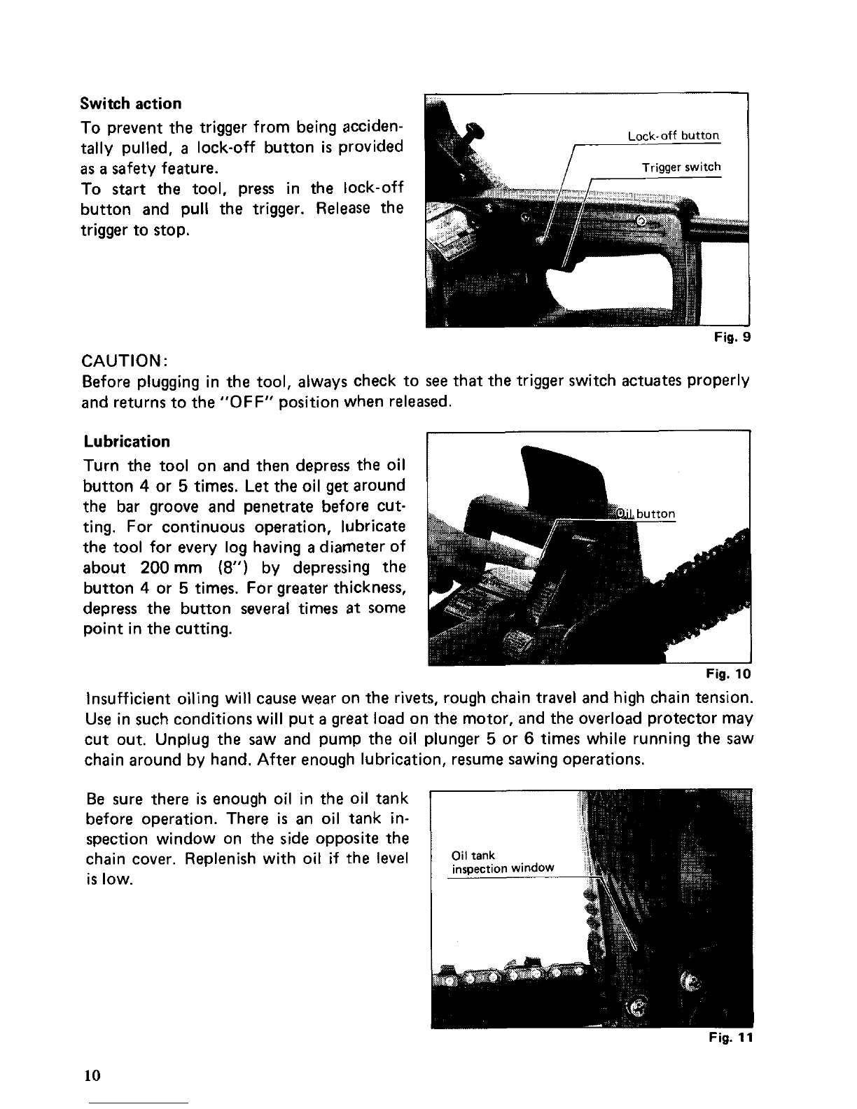 not use chain saw if switch does