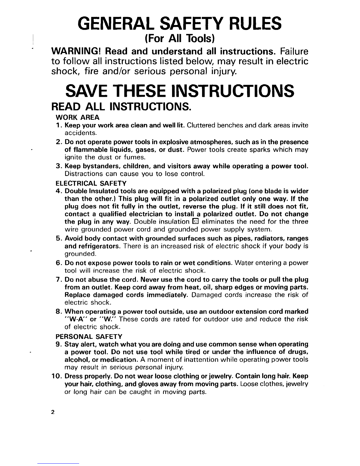 19. Store idle tools out of reach of children and other untrained persons.