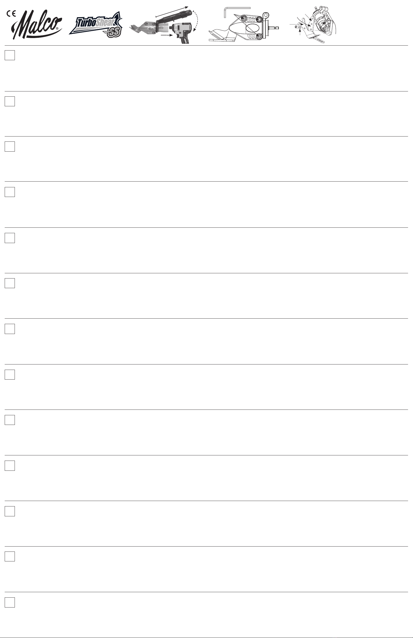 empfohlen für das Schneiden von Materialien, die nichtAsphalt sind. Malco Products,SBC übernimmt keinerlei Verantwortung für die Sicherheit desAufsatzes, wenn er auf andere Weise als die in der Betriebsanleitung vorgesehene verwendet wird. 2.Verwenden Sie nur Bohrmaschinen/Schrauber der angegebenen Nennleistung. 3.Führen Sie eine Sichtprüfung