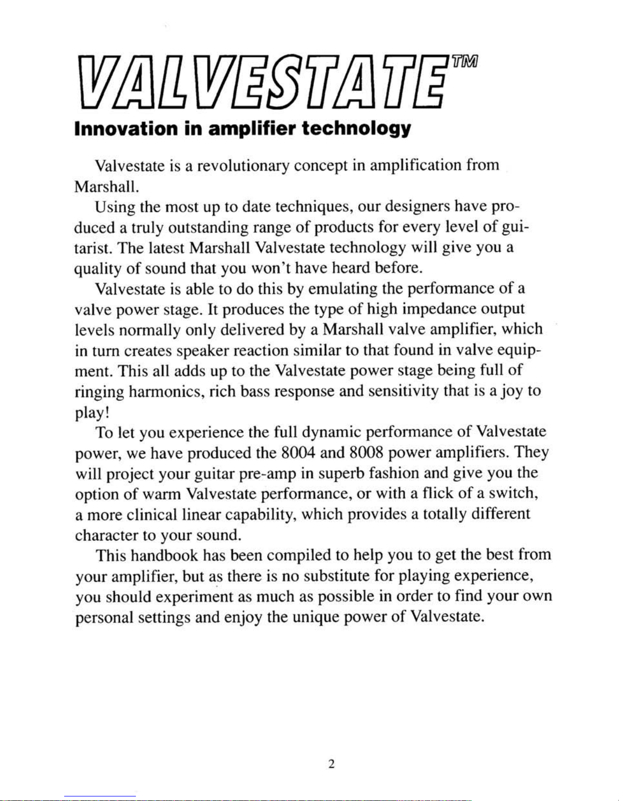 Marshall Amplification VALVESTATE 8008 Manuale utente
