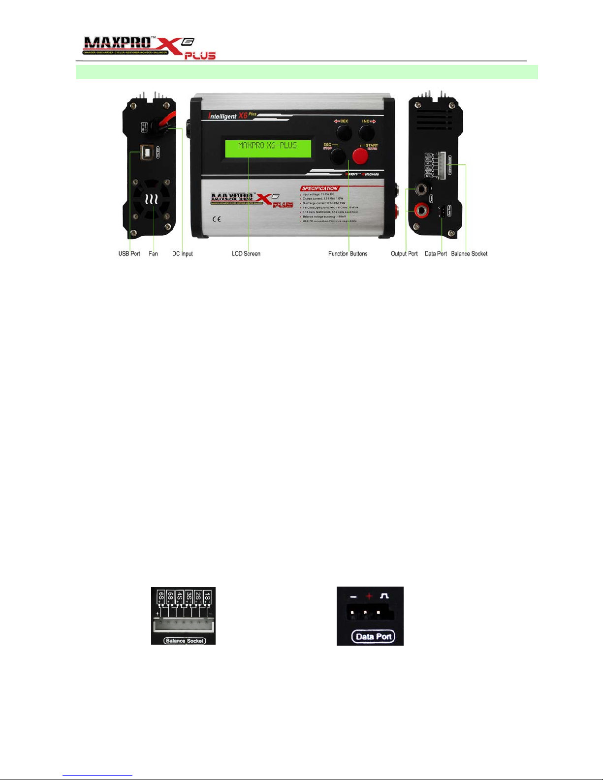 2. The X6-Plus can be used with four types of Lithium batteries (Li-Po, Li-lon, Li-FePO4, Li-Mn) and has a built-in balancer.