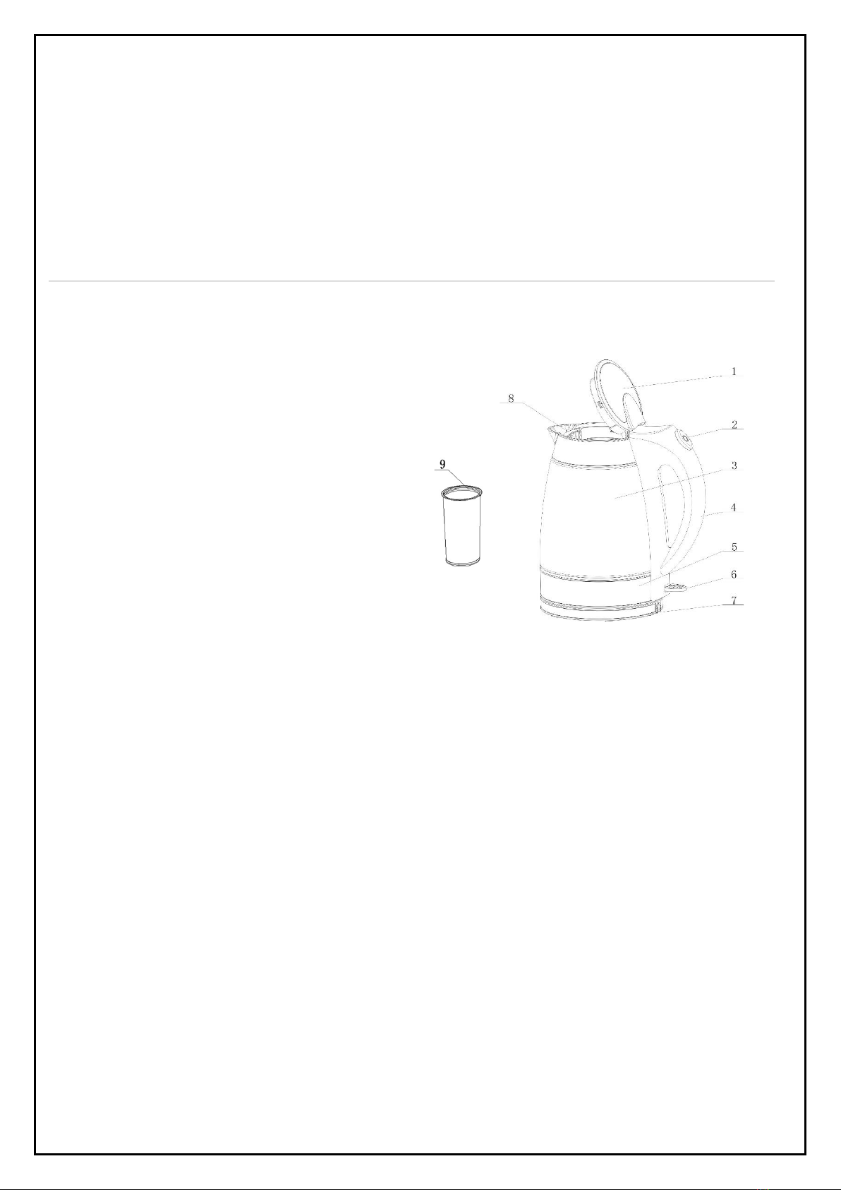 •Pour the desired amount of clean water into the kettle (3), Do not touch any part of the kettle except the handle.