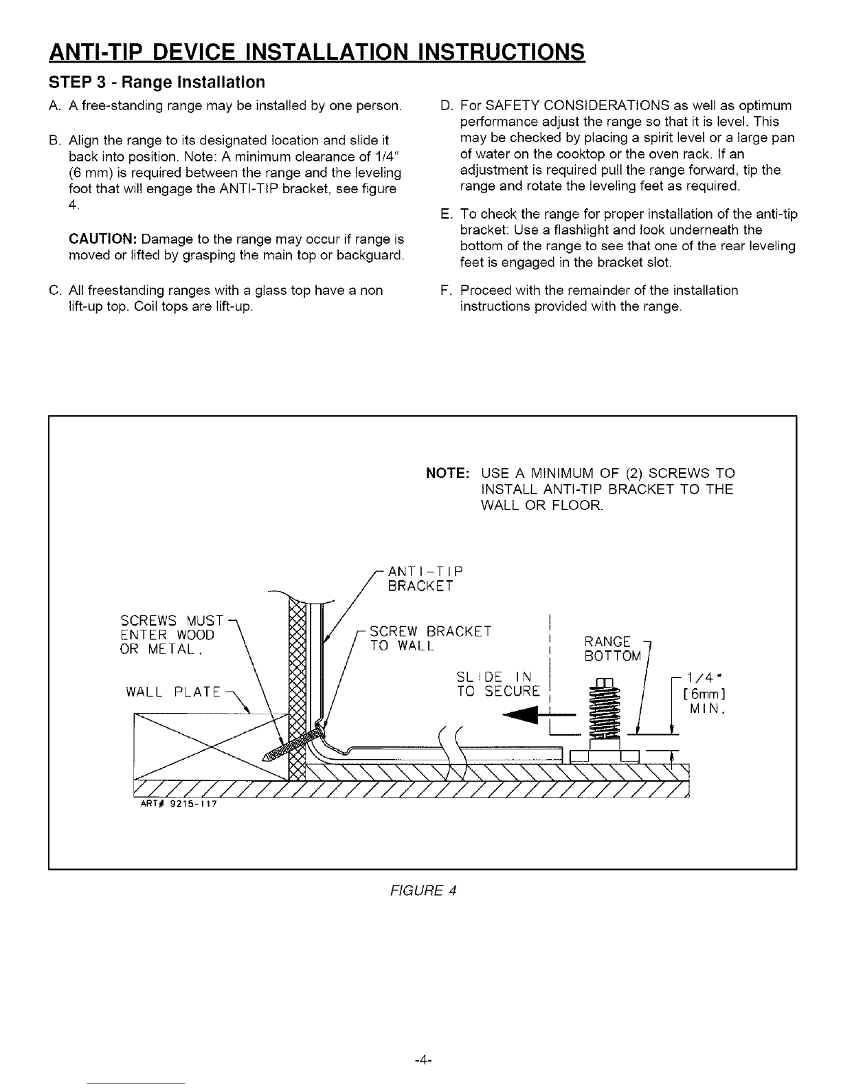 panel to the range and that it be equipped with separate