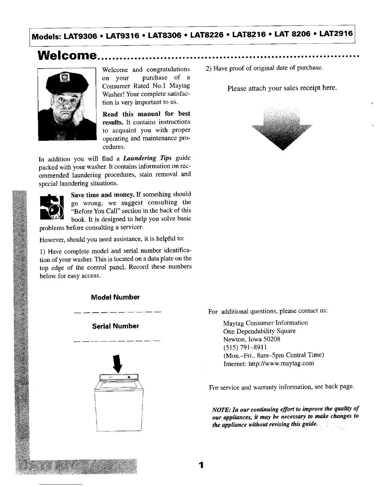 2. As with any equipment using electricity and having ing machine or combination washer-dryer, turn