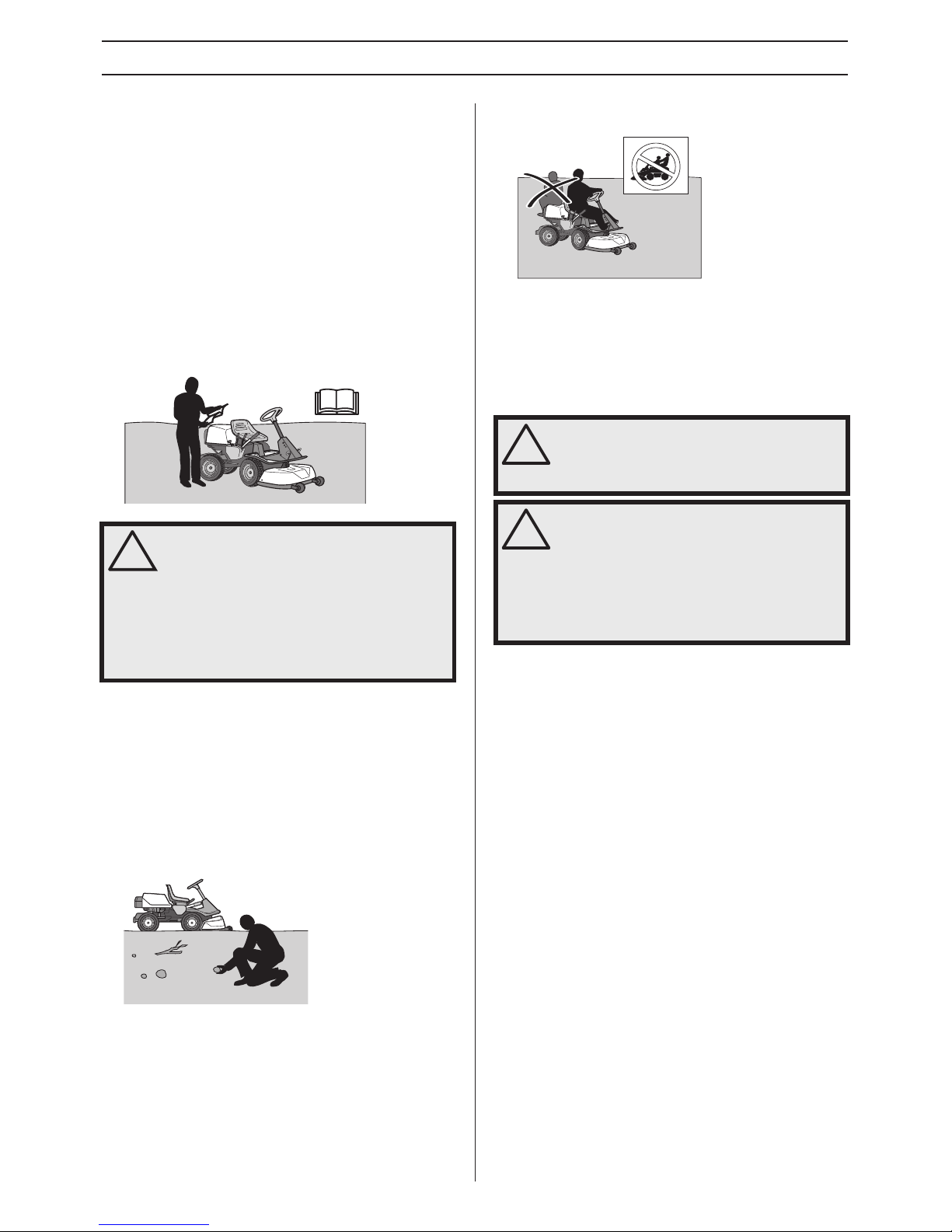 • Never allow children to ride along.They can fall off and