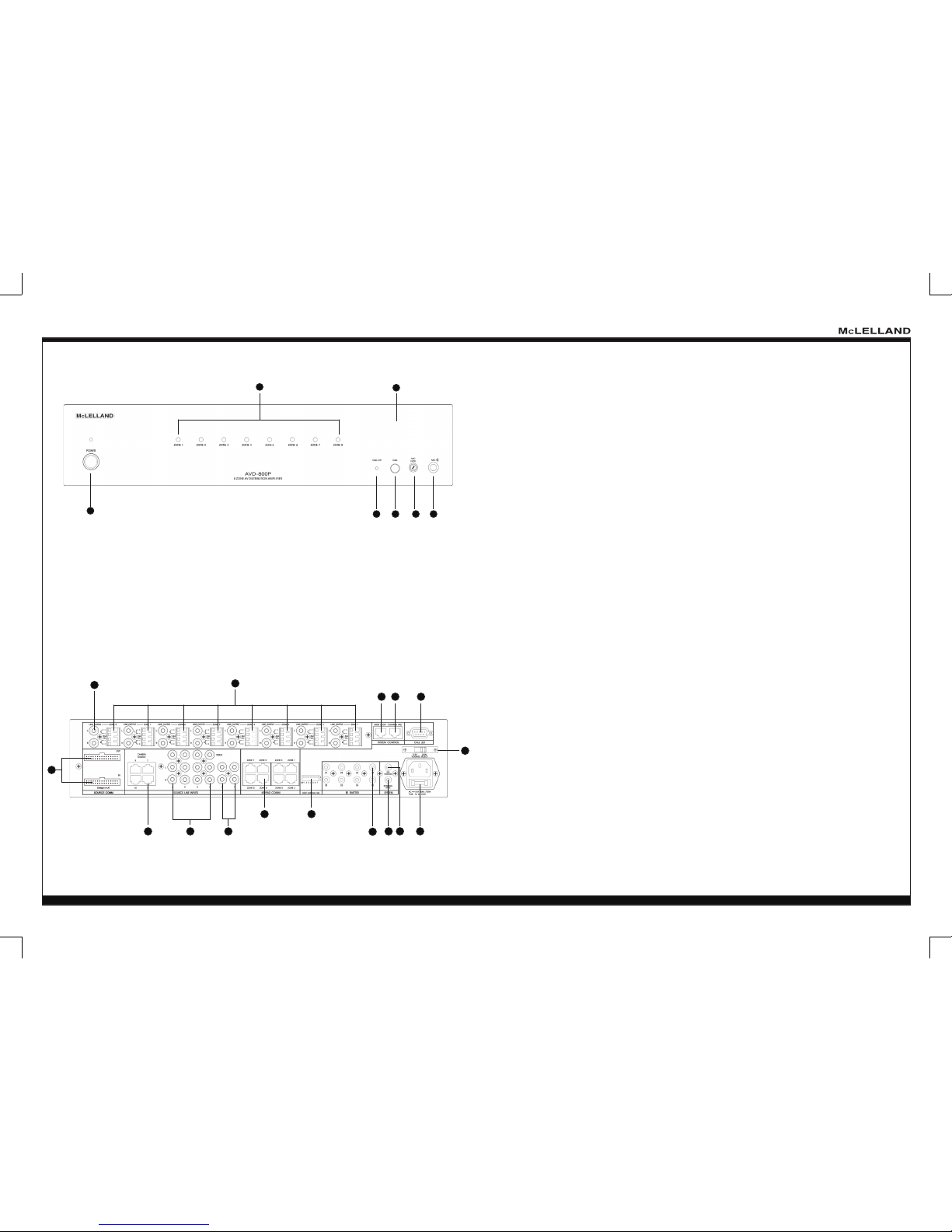 1. Preamp Line Out (1-8): L+R stereo RCA Jacks for connecting Zone Audio Output to an external