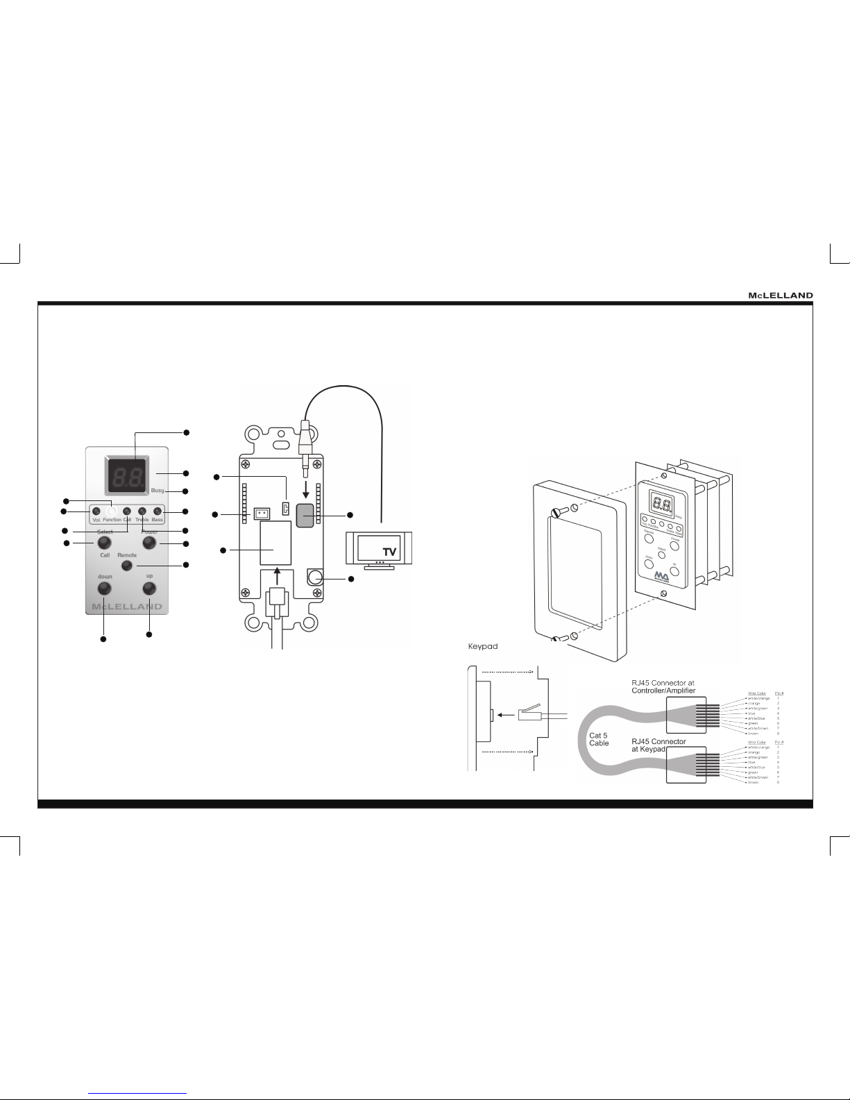 12. Keypad Output (1-8): Each Zone has one RJ-45 jack for keypad interface. Connect the zone CAT5