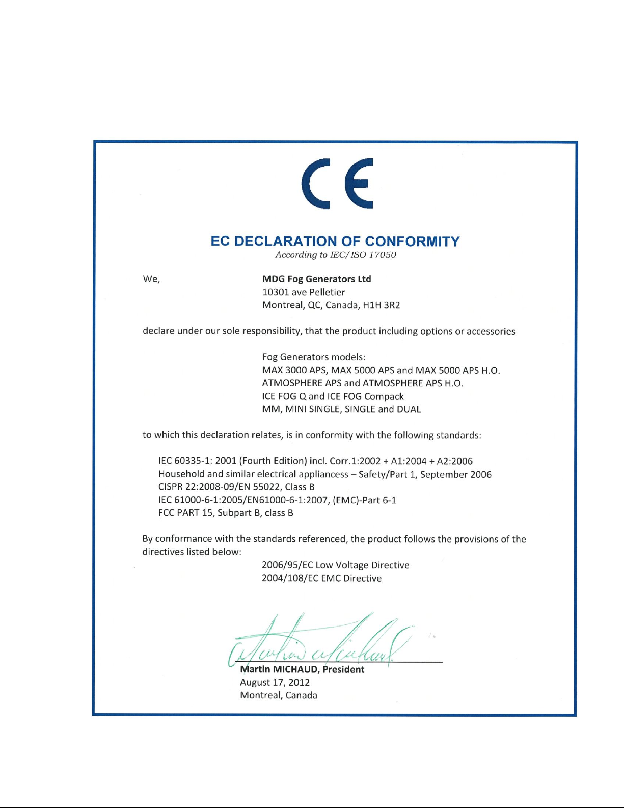 this Fogger with any other fog liquid will automatically void the warranty. MDG
